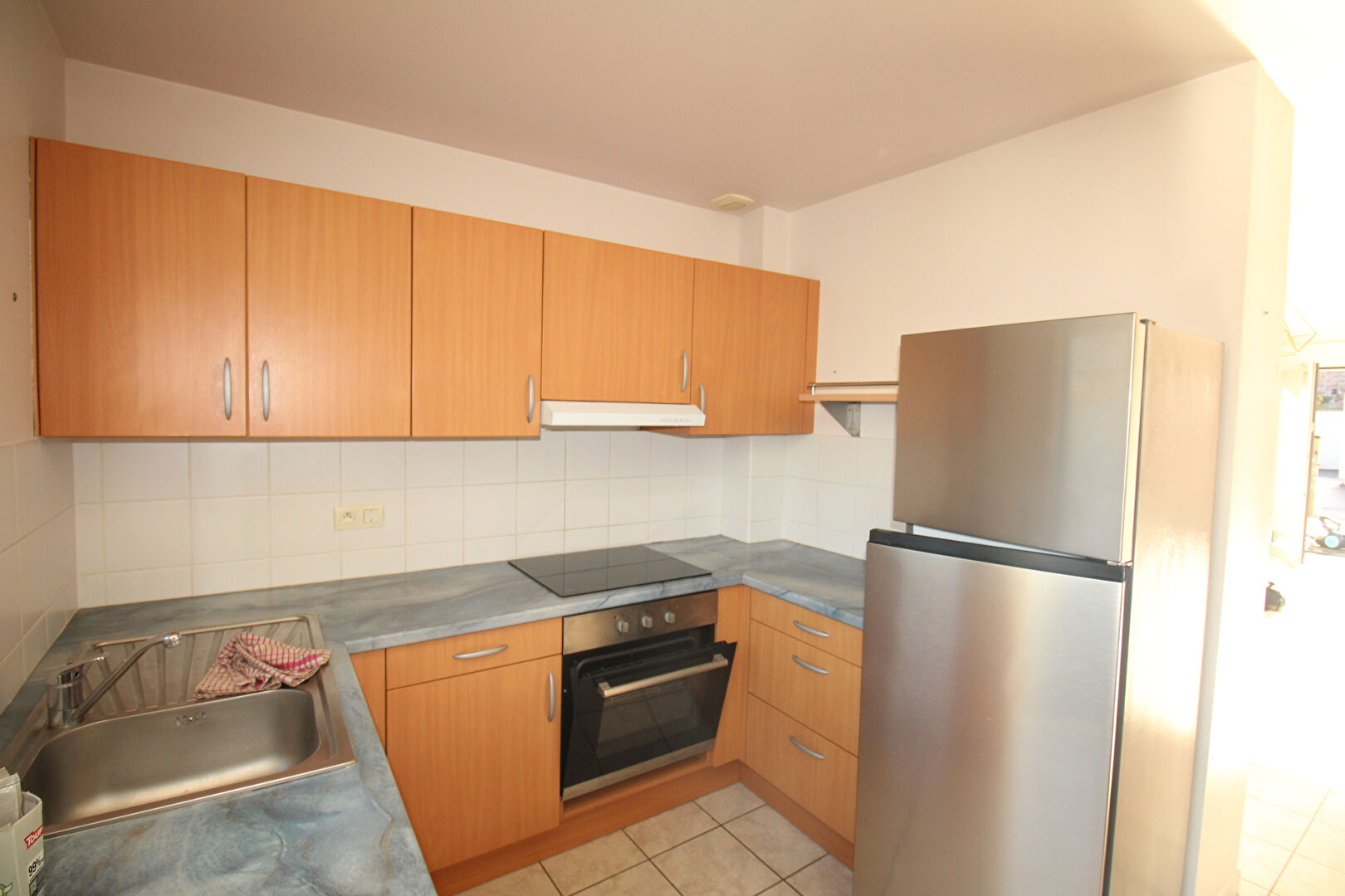 En plein centre, à deux pas des commerces, appartement de Type 3 comprenant au rez-de-chaussée: cuisine aménagée et équipée ouverte sur salon séjour, salle d'eau et wc. En duplex: 2 chambres et salle d'eau avec wc. Terrasse et garage. LIBRE.