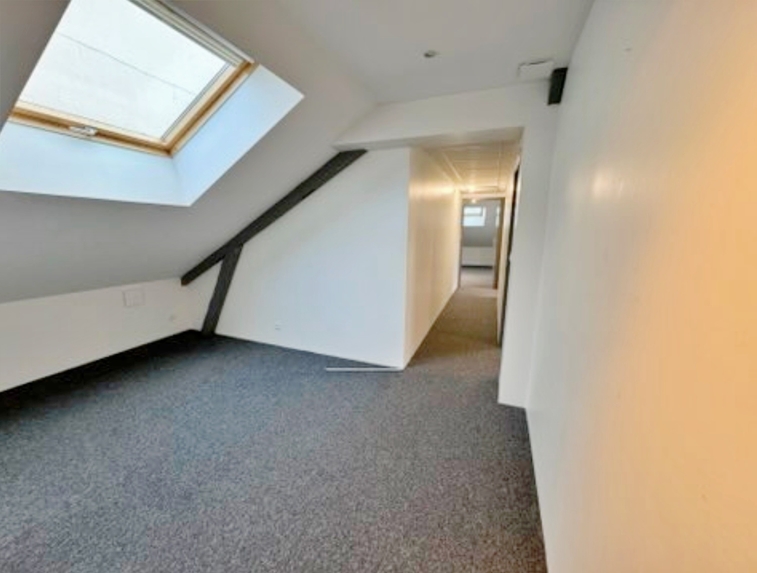 Plateau de 4 bureaux à louer avec un accueil, 86 m² mansardés au 2ème et dernier étage, lumineux et en excellent état, en plus de ce plateau vous pourrez utiliser une salle de réunion de 30 m² partagée.