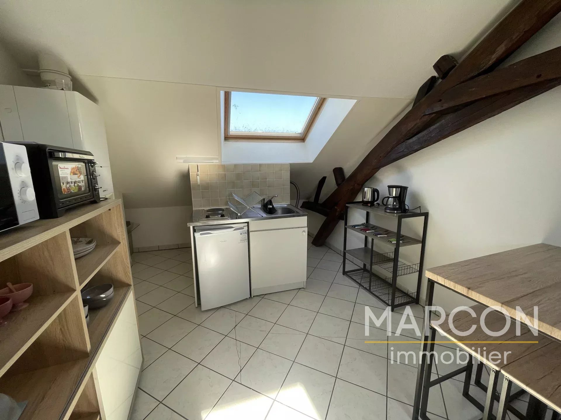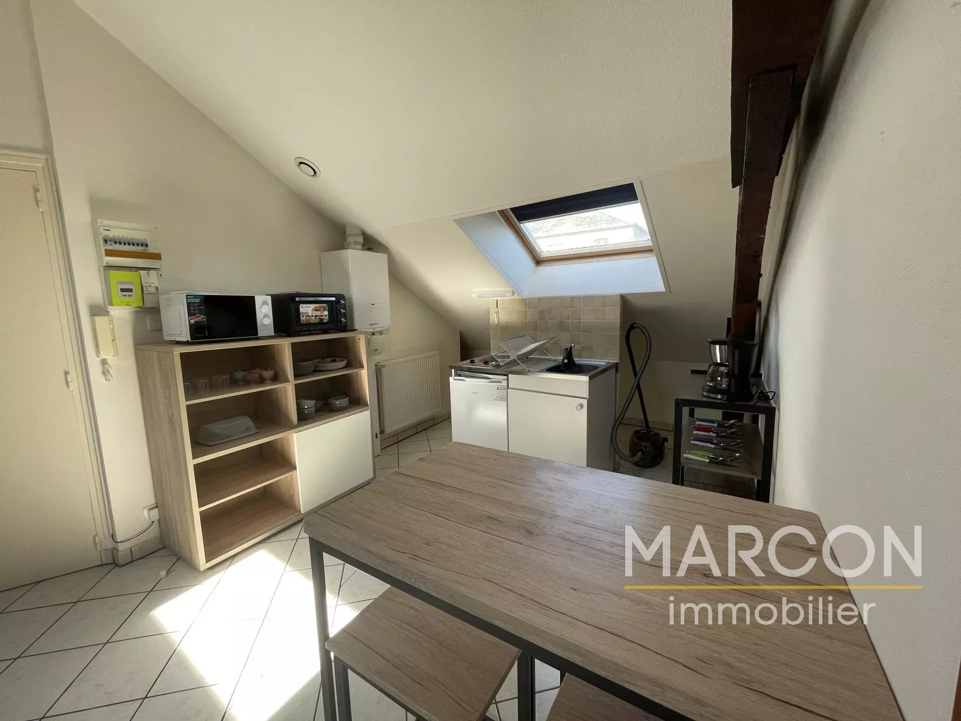 REF 921 - CREUSE EN LIMOUSIN - LA SOUTERRAINE - Marcon Immobilier La Souterraine vous propose un bel appartement meublé de 35 m² situé au 2ème étage d'un petit immeuble, comprenant un séjour avec kitchenette équipée et aménagée (plaques, four, micro-onde ...