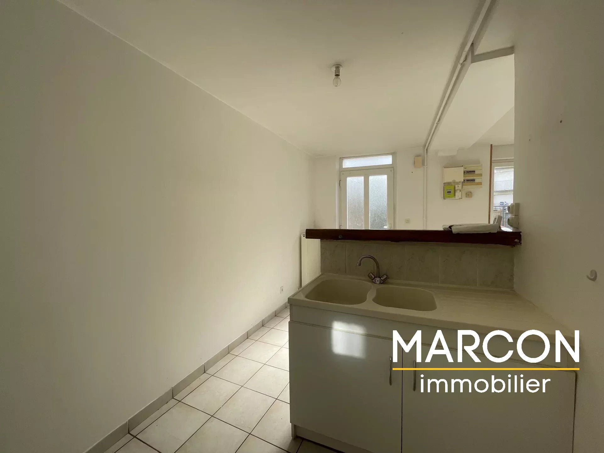 MARCON IMMOBILIER - CREUSE EN LIMOUSIN REF 1355 - Marcon Immobilier LA SOUTERRAINE vous propose cette maison de ville de 60 m², composée au rez-de-chaussée d'une pièce de vie avec coin cuisine, un dégagement, un WC et une courette de 8m2.