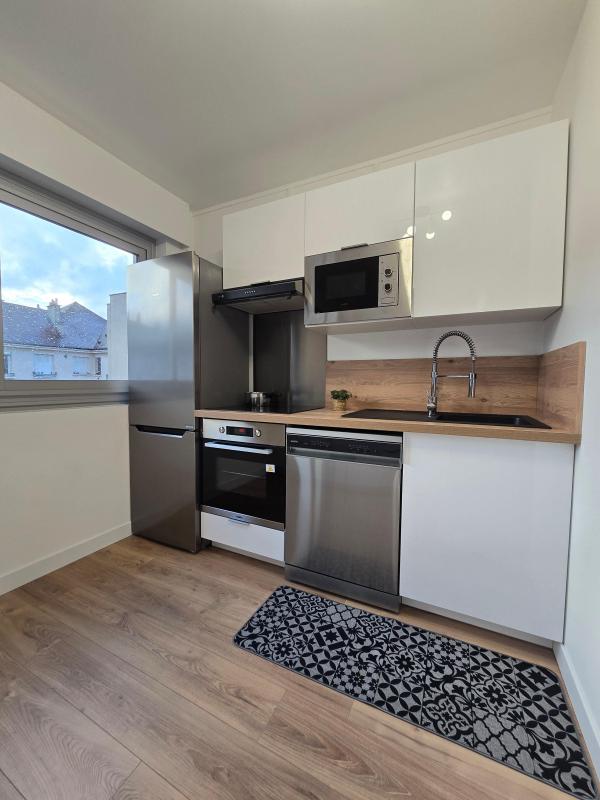 Caen, hypercentre, bel appartement 5 pièces entièrement rénové et meublé à neuf. Il est composé d'un bel espace de vie avec cuisine américaine équipée, 3 chambres, salle d'eau, WC. Lave-linge et lave-vaisselle. Cave
