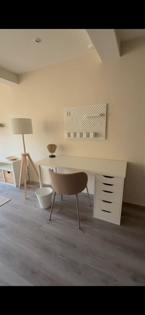 Cet appartement comprend une chambre lumineuse et une pièce à vivre spacieuse. Une cuisine et une salle de...