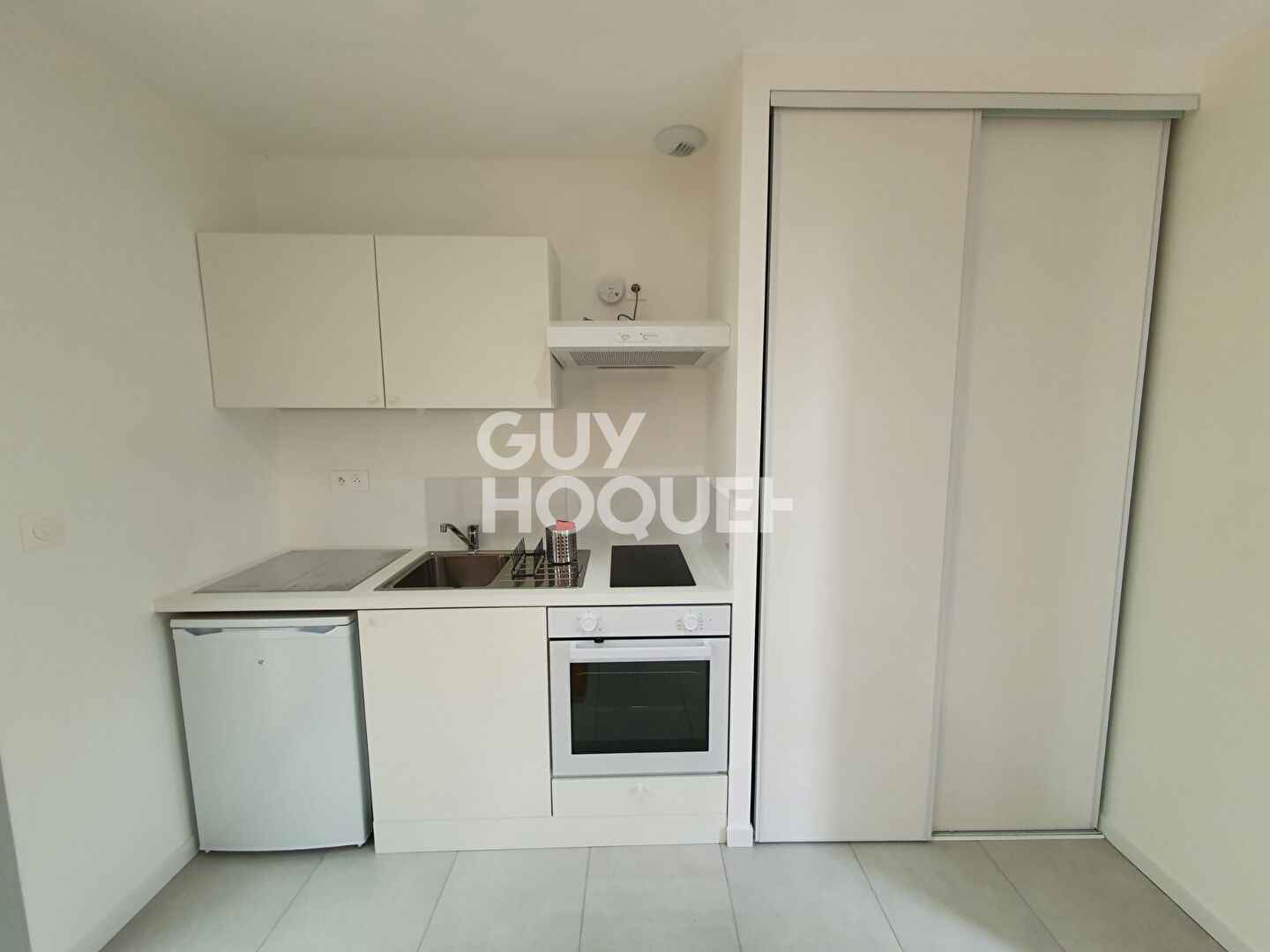 Au pied du tramway, entre les arrêts FORUM et PEIXOTTO, dans une résidence sécurisée, studio en bon état offrant entrée, séjour, kitchenette équipée, salle d'eau avec wc.