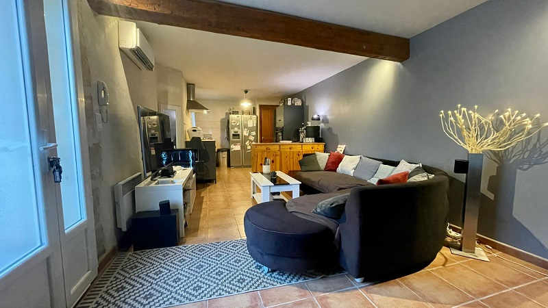 Ce logement situé au rez-de-chaussée d'un immeuble de village. Il est composé d'un salon/salle à manger, une cuisine, deux chambres, une salle d'eau et un WC indépendant.