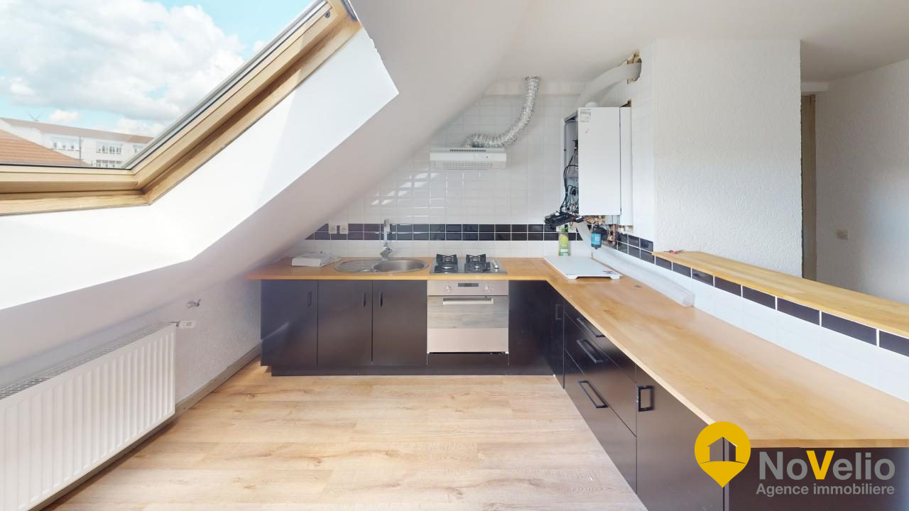 Votre agence Novelio immobilier vous présente un appartement de type F3 au premier étage à Folkling. Située dans une petite copropriété de 2 lots, vous trouverez un vaste séjour et une cuisine équipée avec accès sur une superbe terrasse. Vous disposerez de 2 c...