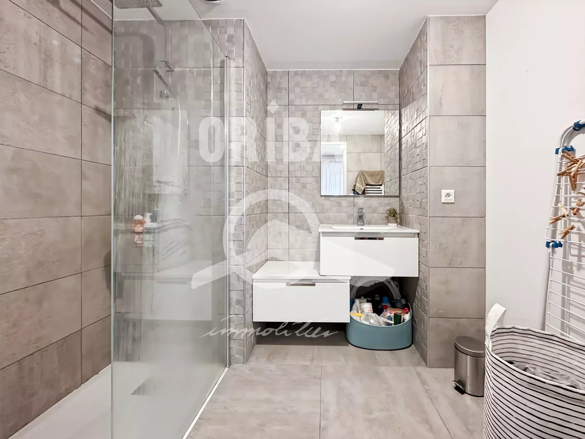 Dès l’entrée, la porte sécurisée s’ouvre sur une pièce de vie lumineuse, sub...