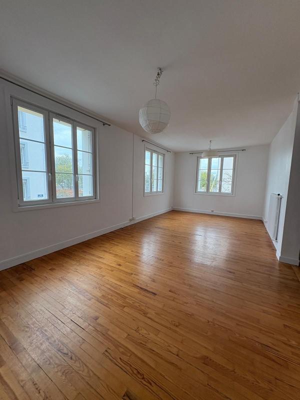 Rive droite, Quatre-Moulins, bel appartement T2 au 3ème Grandes pièces très claires. Cuisine aménagée, salle d'eau récente. Beaux parquets. Chauffage individuel au gaz. Libre à la location.