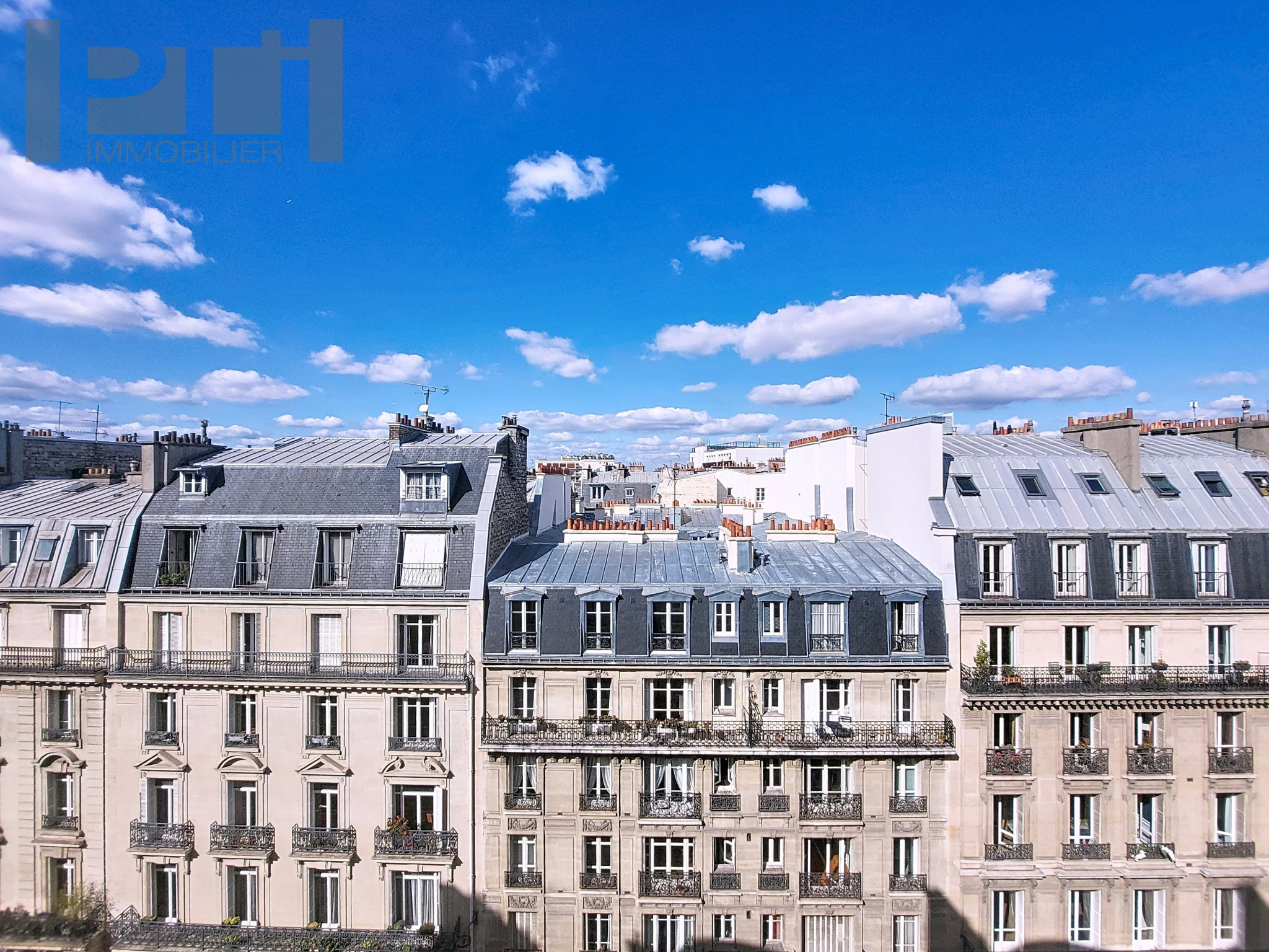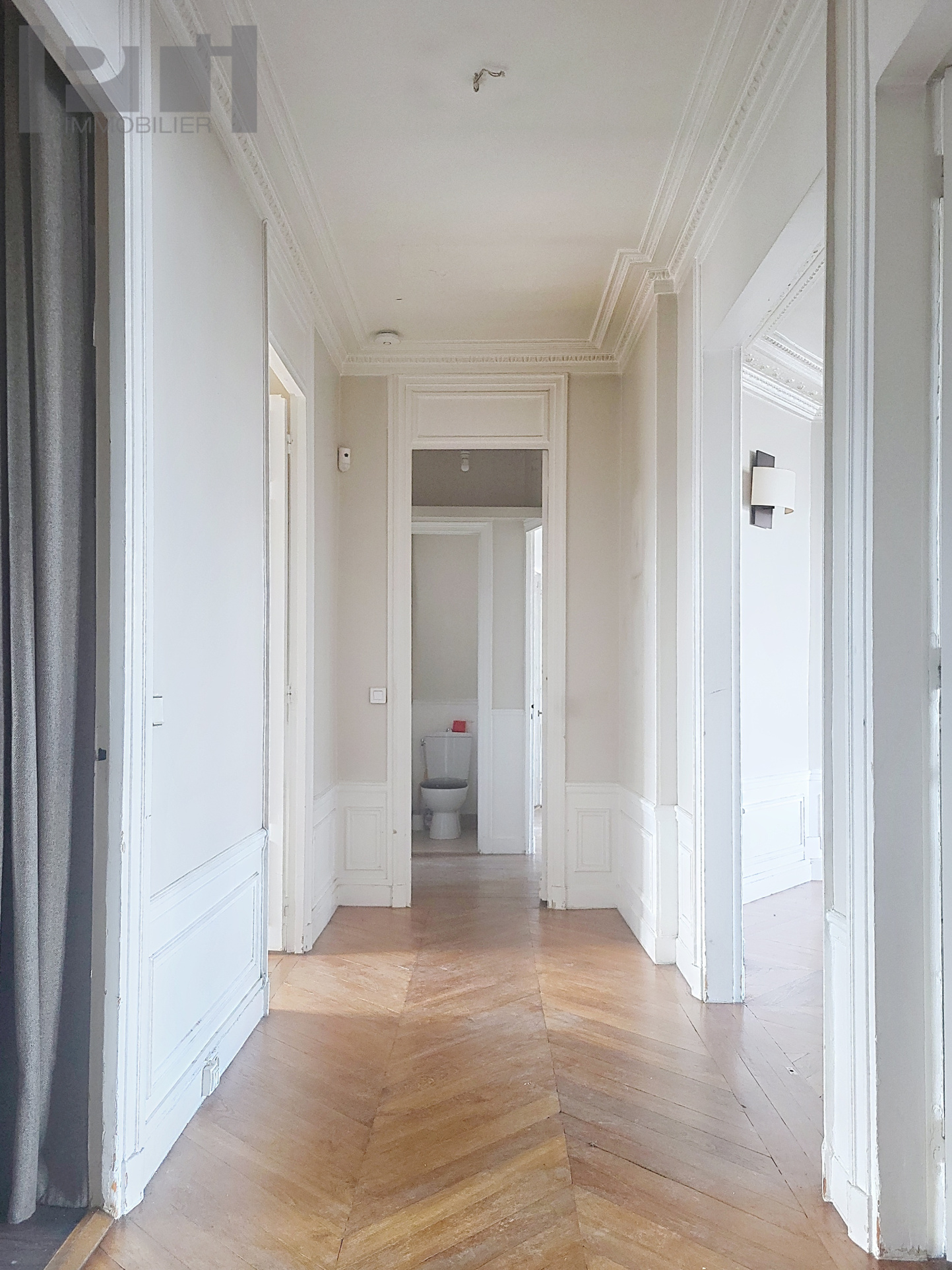 Dans bel immeuble Pierre de Taille, au 7ème étage sur 8 avec ascenseur, appartement 4 pièces de 92,49 m2 comprenant: entrée, double séjour 34 m2 sur balcon vue dégagée, cuisine indépendante, deux chambres don...