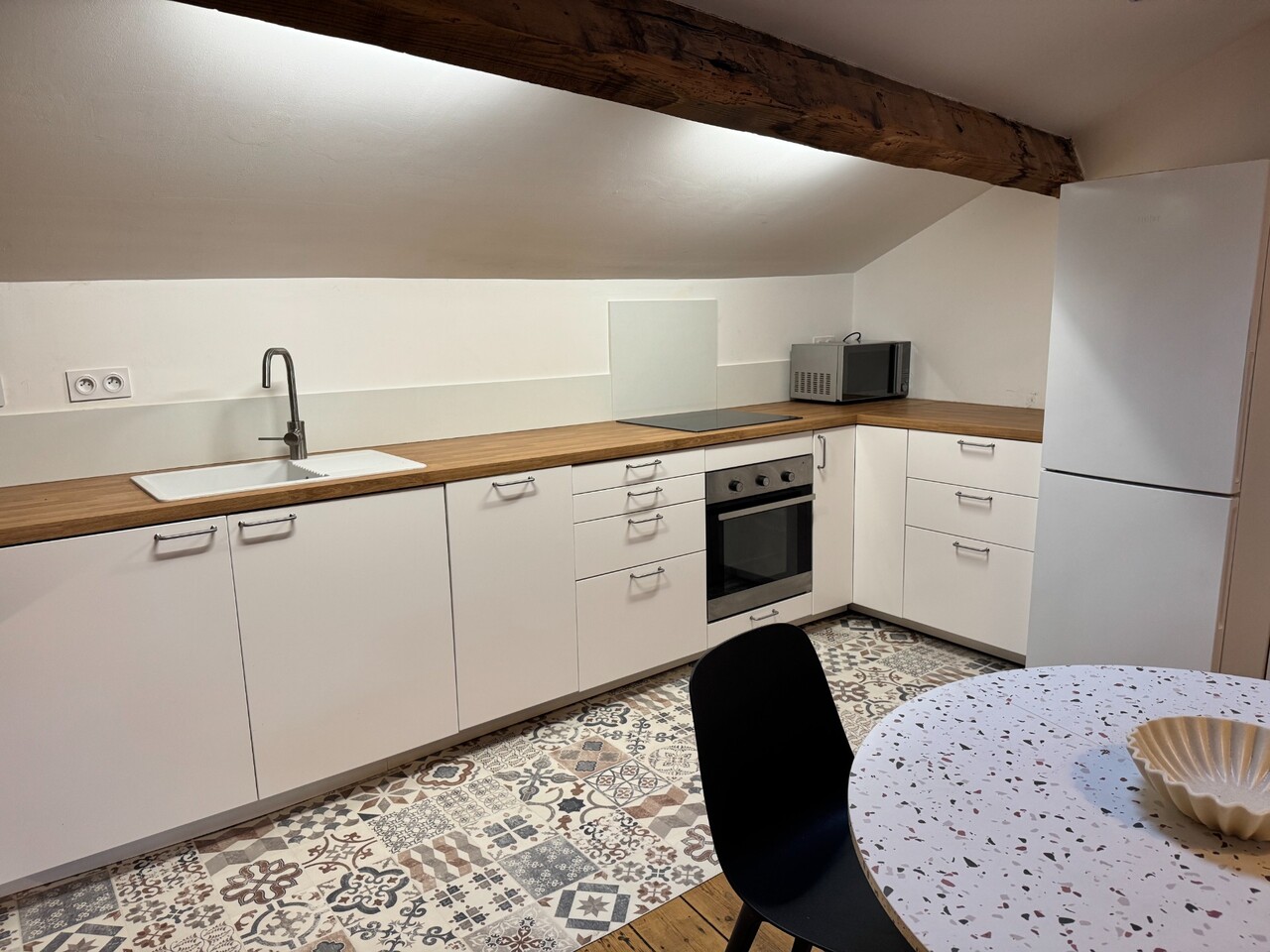Tain L'Hermitage: Au 3eme et dernier étage sans ascenseur, proche de la place Taurobole, joli appartement T2 de 41.75m² avec poutres apparentes et belle luminosité. Grande pièce de vie avec cuisine équipée, une salle de bain avec wc et une grance chambre ...
