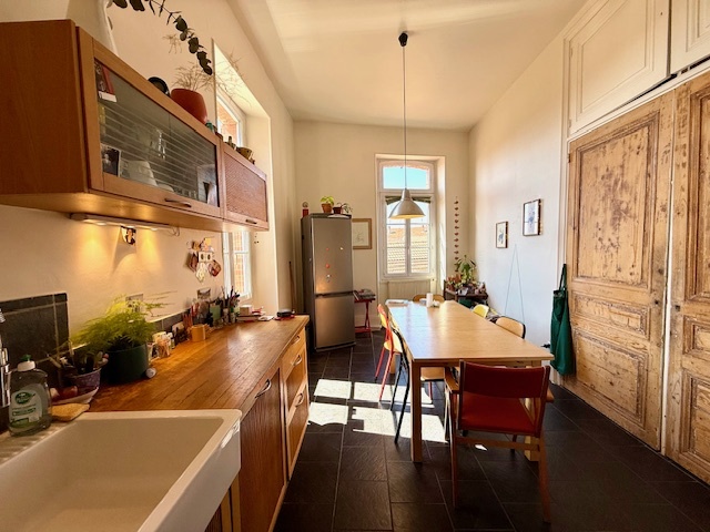 ROMANS CENTRE VILLE - Un appartement de type 4 de 128.79m² situé au 2ème étage sans ascenseur d'une petite copropriété comprenant : une entrée, un spacieux séjour de 40m², une cuisine séparée étant équipée d'une plaque et d'une hotte et aménagée...