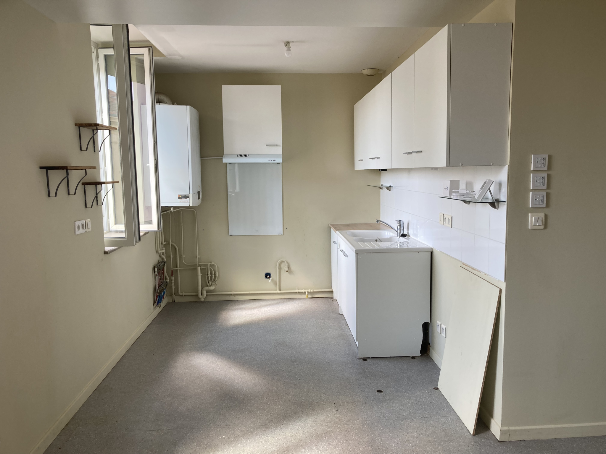 AMPLEPUIS, 8 rue du 8 mai au 1er étage, appartement de 73.39 m2 comprenant une cuisine équipée, un séjour/salon de 21 m2, deux chambres, une salle d'eau, un wc, une cave. Chauffage individuel électrique. Libre au 05/02/2023.