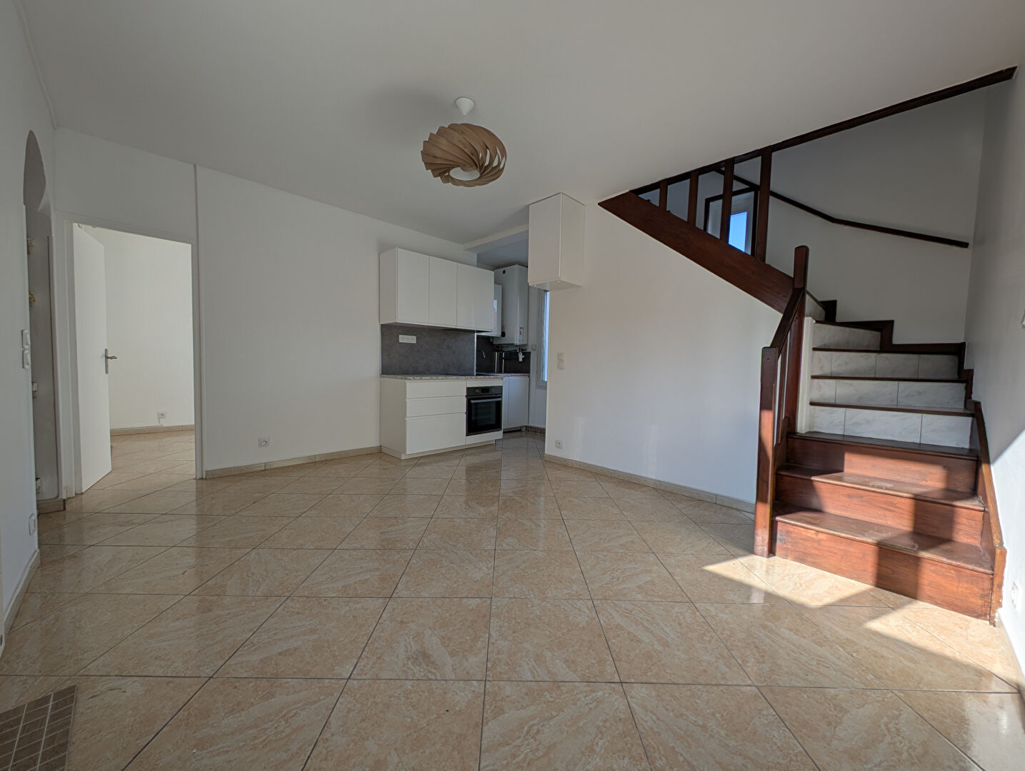 Dans une maison divisée en 2 appartements, appartement familiale de 4pièces composé ainsi : Séjour-cuisine, chambre avec salle d'eau attenante avec wc.