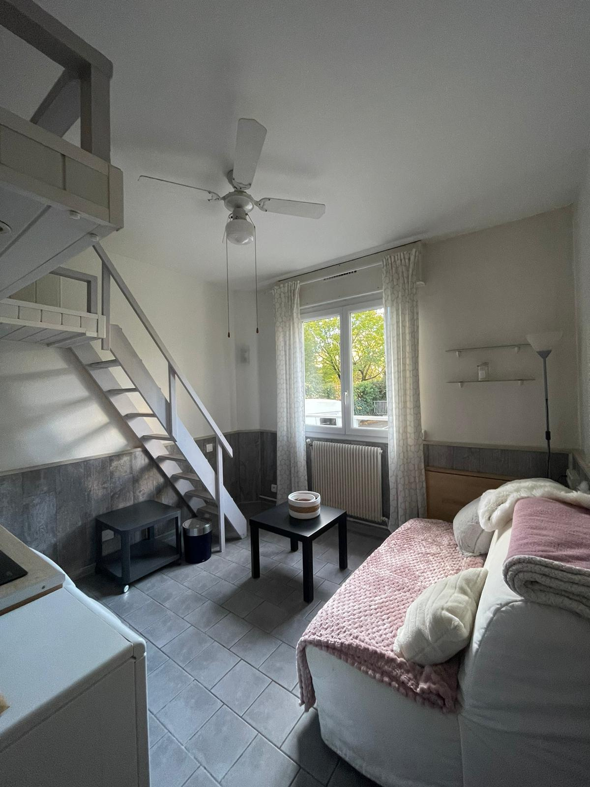 Studio meublé situé en rez-de-chaussée surélevé, sans vis à vis, calme et lumineux, au sein d'un immeuble sécurisé, comprenant une entrée avec rangements, une pièce de vie avec cuisine équipée, un coin nuit en mezzanine et ...