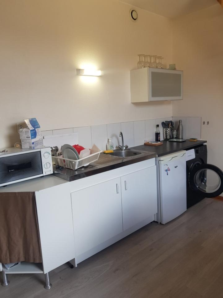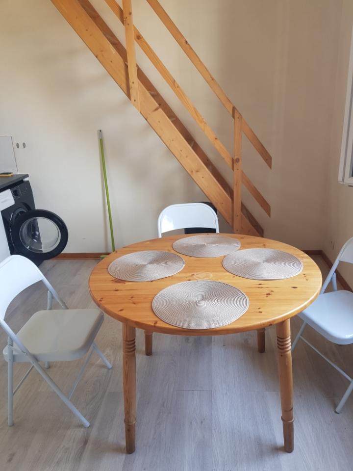 Appartement studio situé au premier étage et composé d'un séjour avec coin cuisine, un coin nuit en mezzanine, une salle d'eau et un WC.