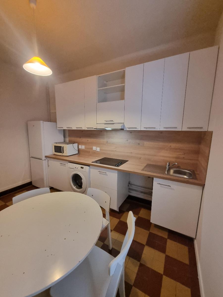 A louer un appartement T2 d'une surface de 37.62m² au 1er étage. Composé d'une cuisine équipée (hotte/plaques/four/frigo) ouverte sur séjour, une chambre avec placard, une salle de ...