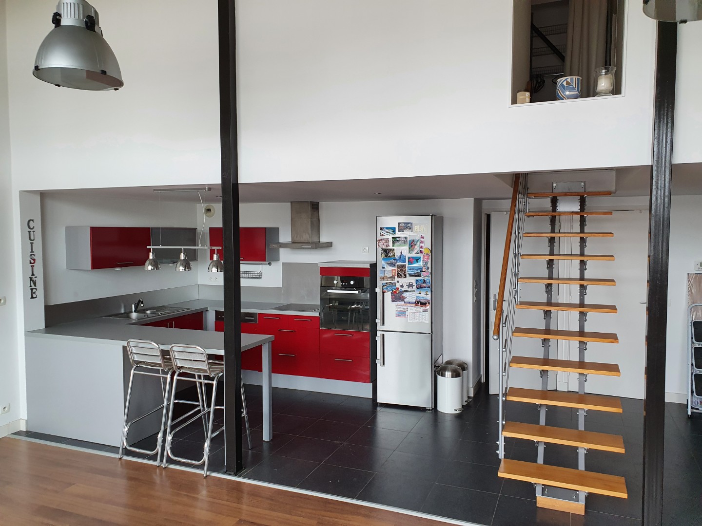 SPACIEUX APPARTEMENT DE TYPE LOFT avec BALCON et PLACE DE PARKING comprenant un hall, un salon-séjour ouvert sur cuisine équipée, un cellier buanderie à l'étage 2 chambres et une salle d'eau. Chauffage individuel gaz. - Les informations sur les risqu...