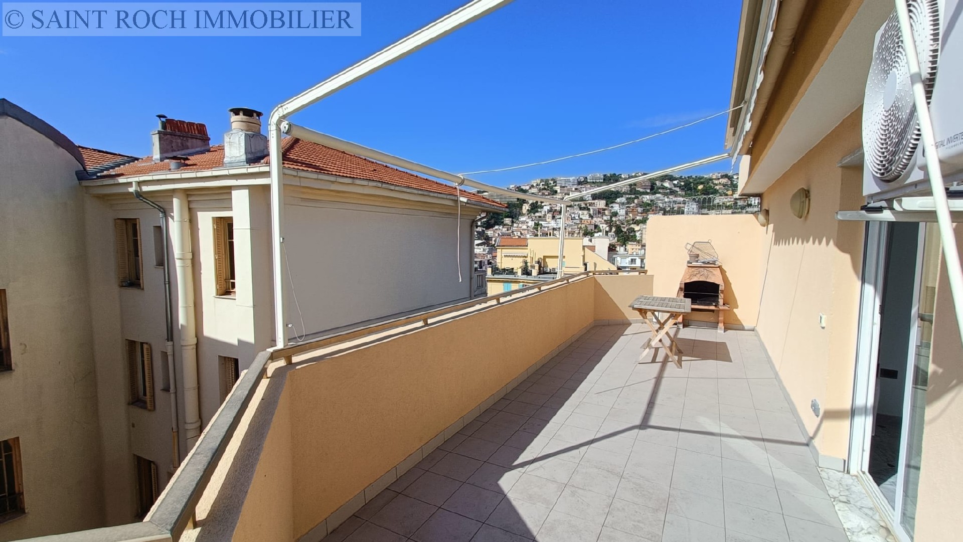 Nice Borriglione, F2 vide en duplex au 6ème et dernier étage avec ascenseur d'une résidence, composé d'un séjour, donnant sur une grande terrasse avec vue dégagée sur la ville, une cuisine meublée, donnant également sur la terrasse, une salle de bain...