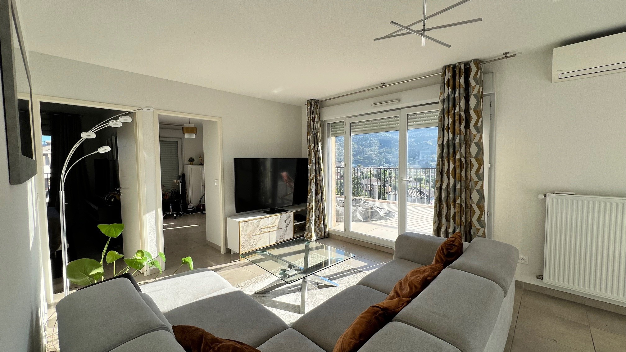 CARROS-LES-PLANS : Dans une résidence fermée et sécurisée, trés bel appartement de type trois pièces d'une surface habitable de 66m2, loué VIDE, situé au troisième et dernier étage, composé d'une entrée avec placard, d'un séjour avec cuisine amé...