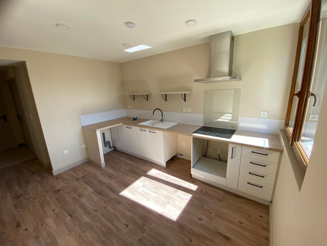 Appartement de type 2 placé au rez-de-chaussée d'une bâtisse.