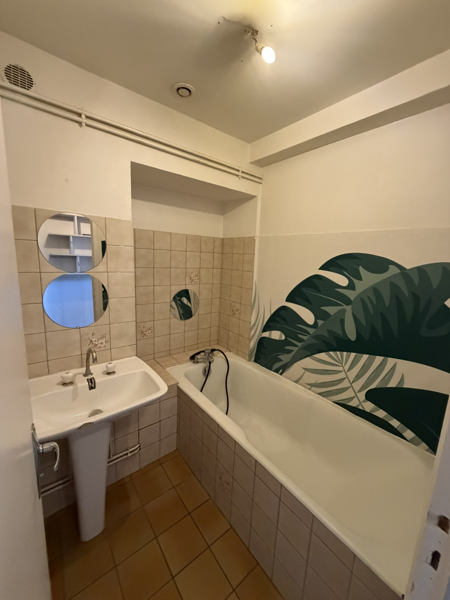 Appartement en rez-de-chaussé comprenant un hall d'entrée avec deux grands placards, un salon, une chambre, une cuisine aménagée et une salle d'eau.