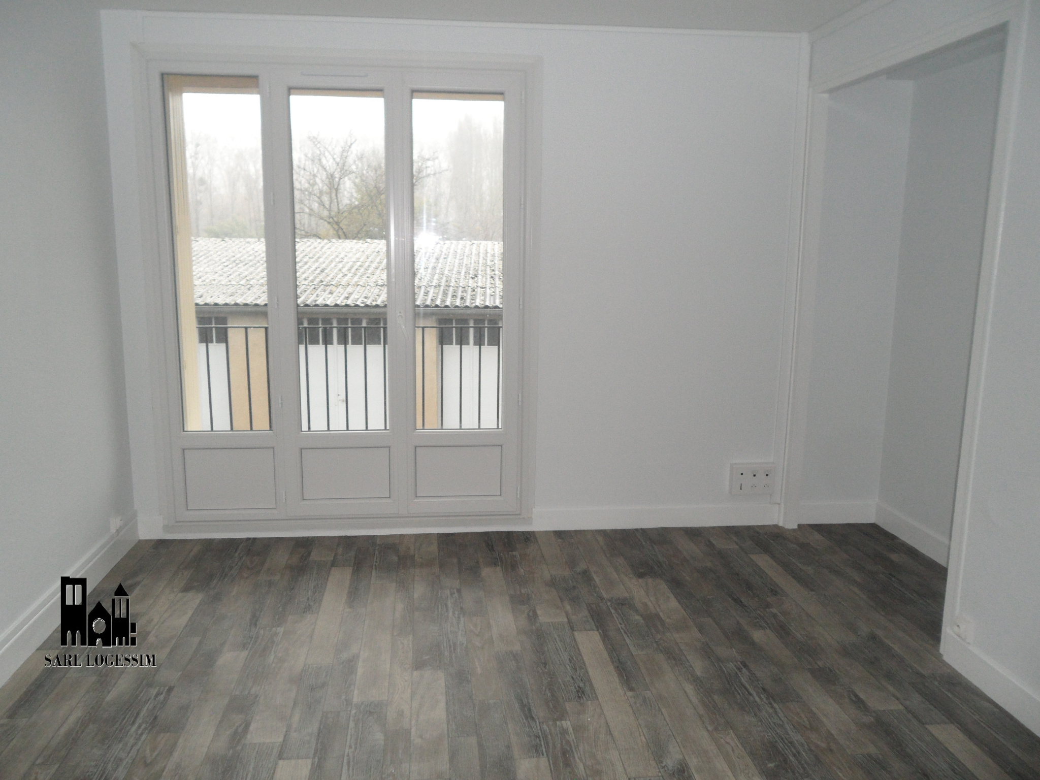 Appartement de 63m2 comprenant : un séjour avec coin cuisine aménagé et équipé (plaque de cuisson, four, hotte, réfrigérateur), deux chambres, une salle d'eau et un WC.