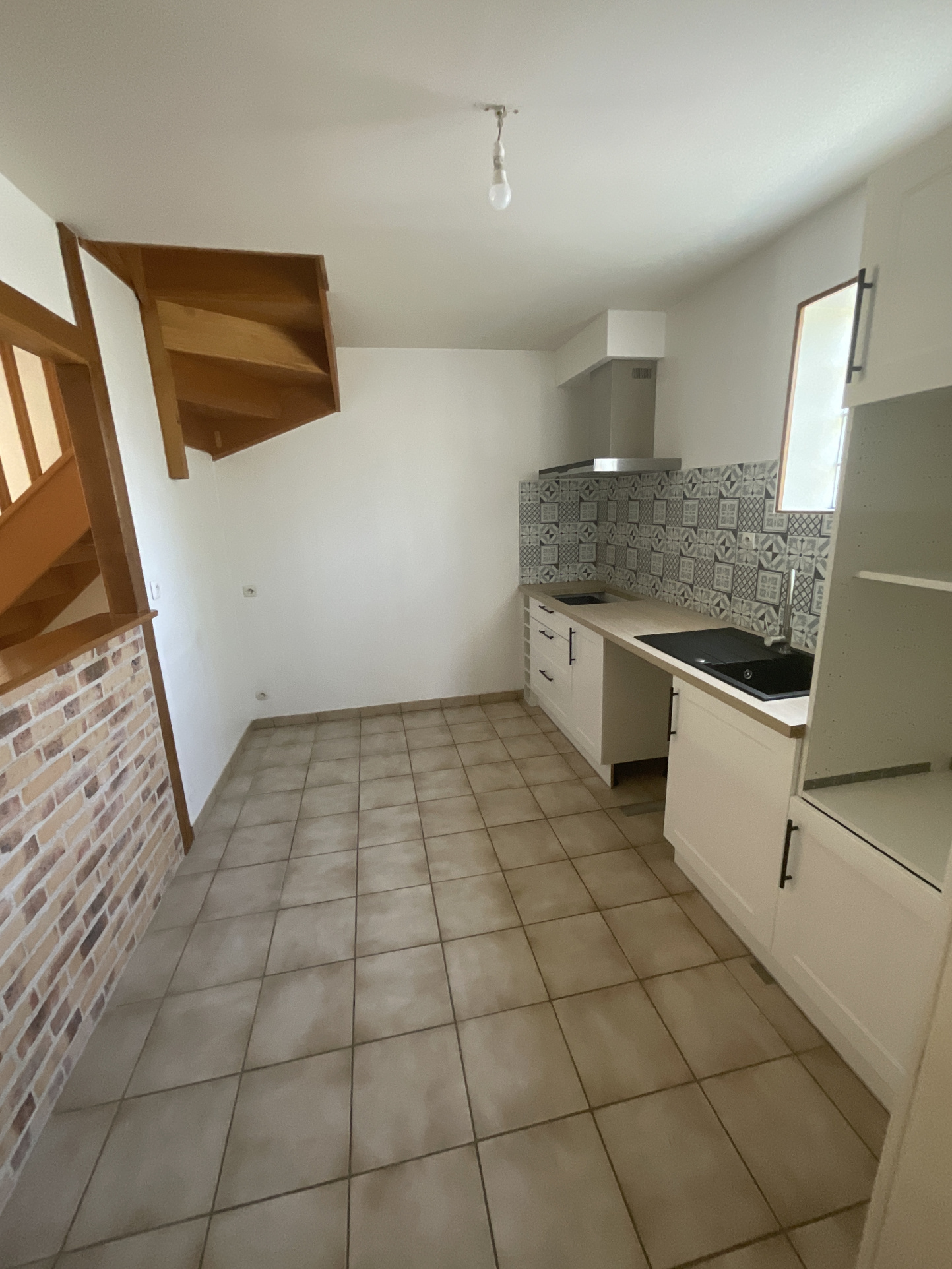 Maison de 81.23m2, comprenant une entrée, un grand séjour salon, une cuisine aménagée ouverte sur le séjour-salon, un débarras et un WC avec lave mains.