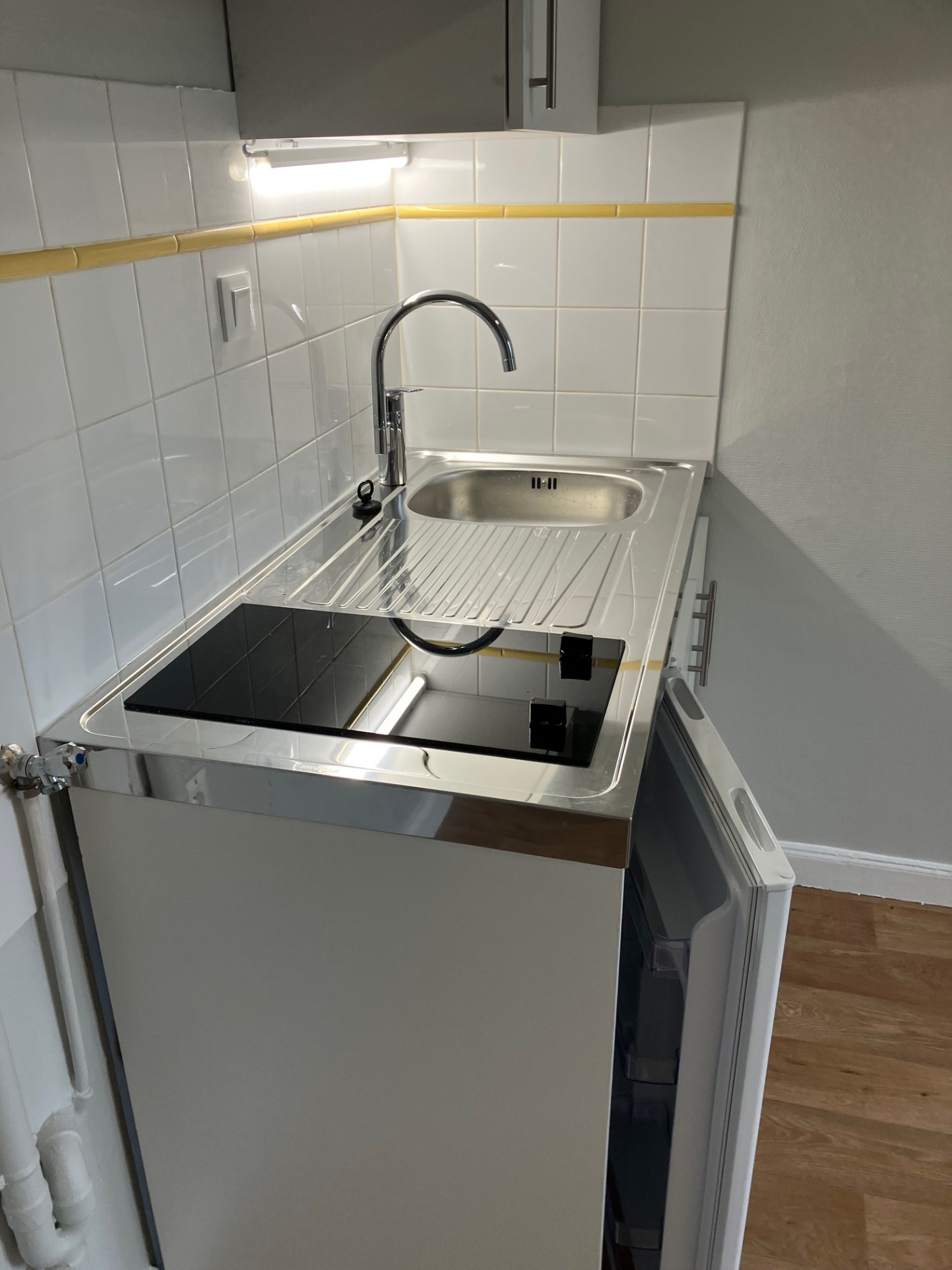 Résidence dans l'hyper centre de Reims. Une chambre meublé de 9 m2 comprenant une pièce principale avec une kitchenette et une douche. WC commun sur le palier.