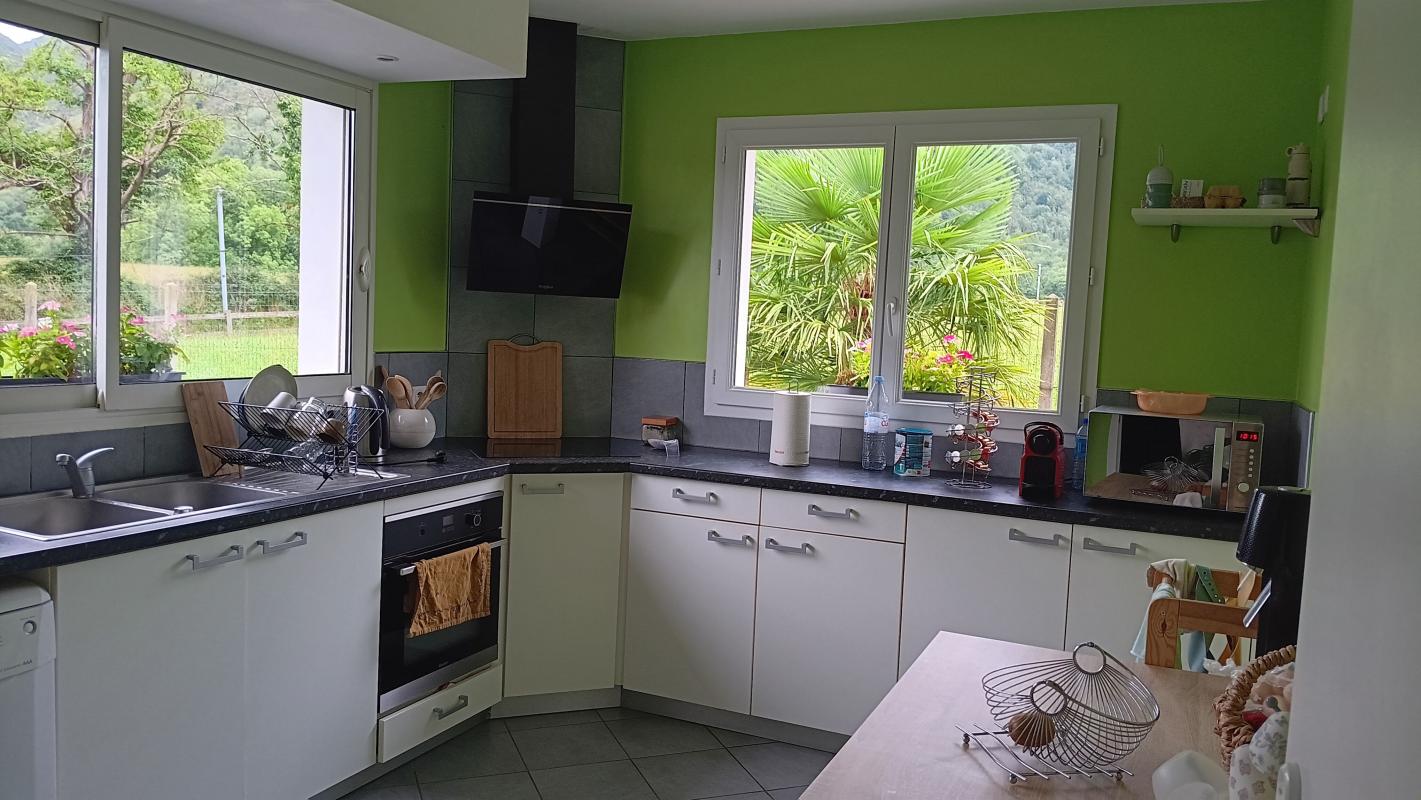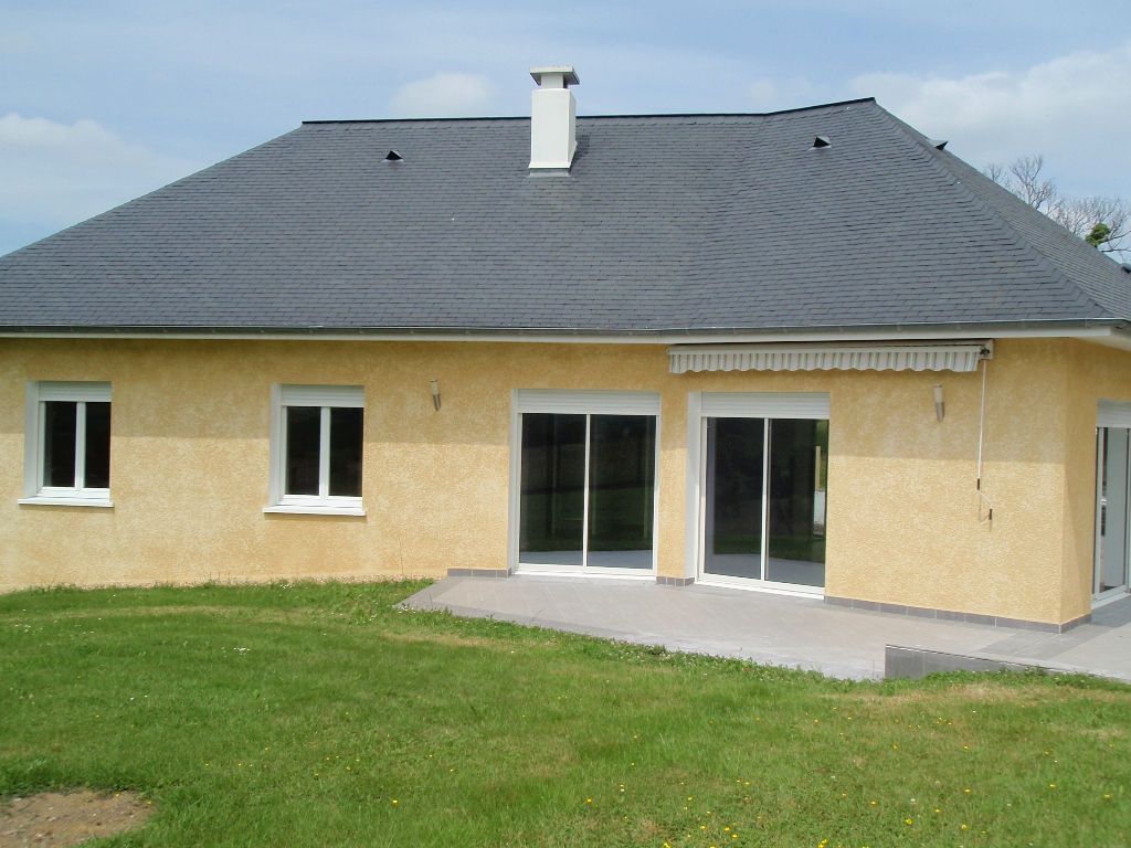10 mn de Nay: Maison contemporaine tout confort de plain pied comprenant 3 chambres et un grand séjour très clair donnant sur une terrasse face aux montagnes. Cuisine équipée, véranda, garage sur joli terrain clos au calme. Ecole et commerces à 5 mn. Disponibl...