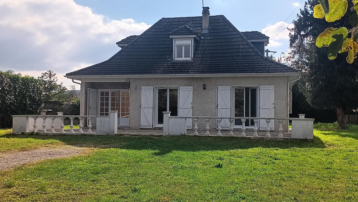A 10 mn. de Pau et à 10 mn. de Nay, maison sur rdc + étage comprenant un séjour avec cheminée décorative, cuisine équipée ouverte sur séjour avec une grande pièce attenant, deux chambres, un bureau, une salle de bains et une pièce de rangement-dressing. Jo...