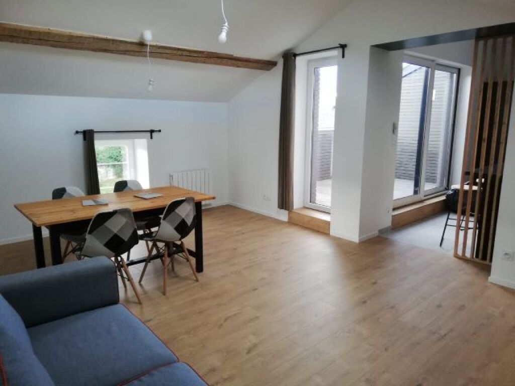 NOUVEAU A LA LOCATION : T2 52M2 Au centre de Brioude dans un immeuble refait à neuf avec des matériaux de qualité alliant à la fois charme de l'ancien et modernité. Disposant d'un ascenseur. Au 1er étage T2 de 52m2 comprenant : Un séjour/cuisi...