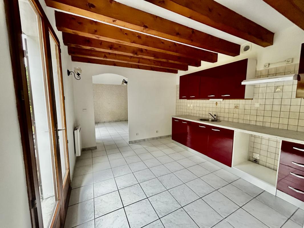 Une cuisine aménagée ouverte sur un grand salon avec accès direct à la terrasse plein Sud.
