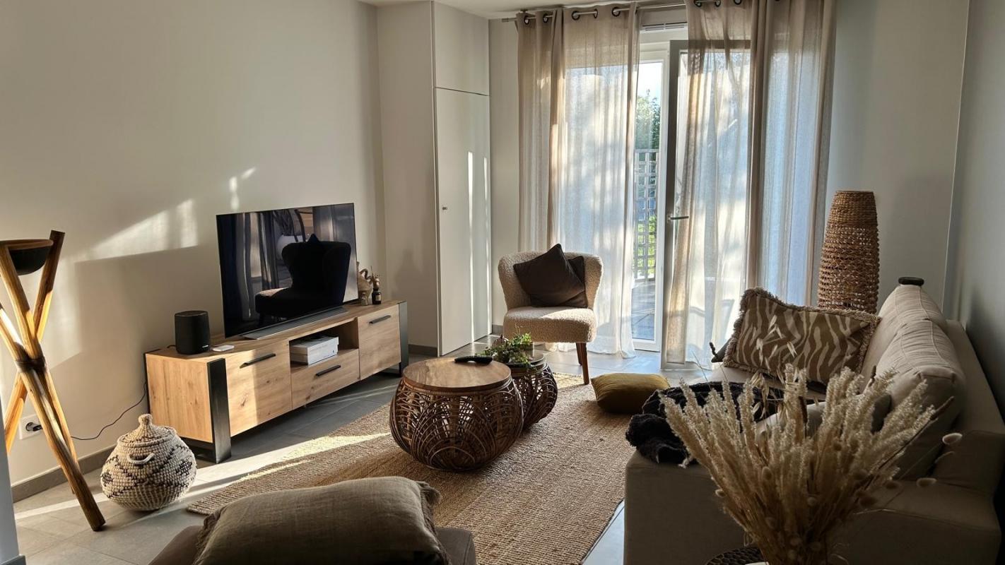 Bel appartement T2 de 56.80 m² comprenant : une entrée, une belle cuisine équipée ouverte sur le séjour donnant sur l...