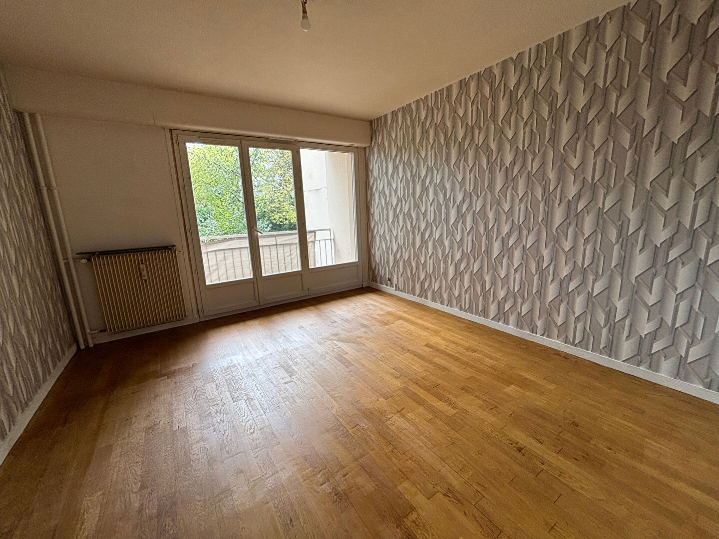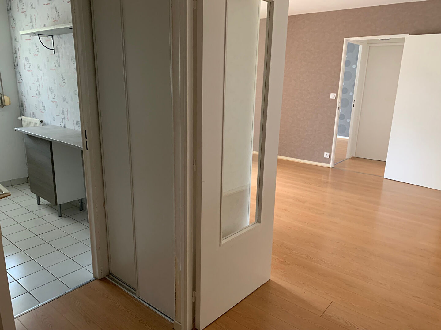 Appartement de type 3 : une entrée desservant un grand séjour sur cuisine ouverte aménagée et...