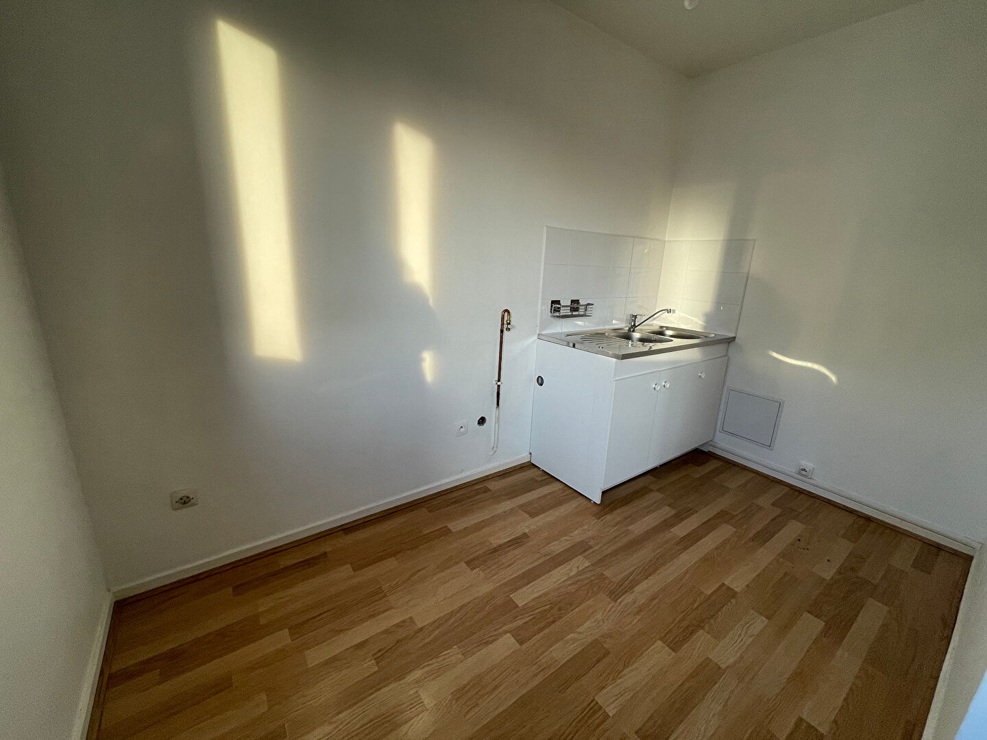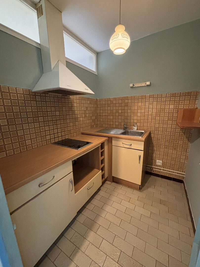 Grand T1 BIS en rez de chaussée comprenant une entrée, une pièce principale lumineuse, un coin cuisine semi séparée, une salle de bain avec WC.