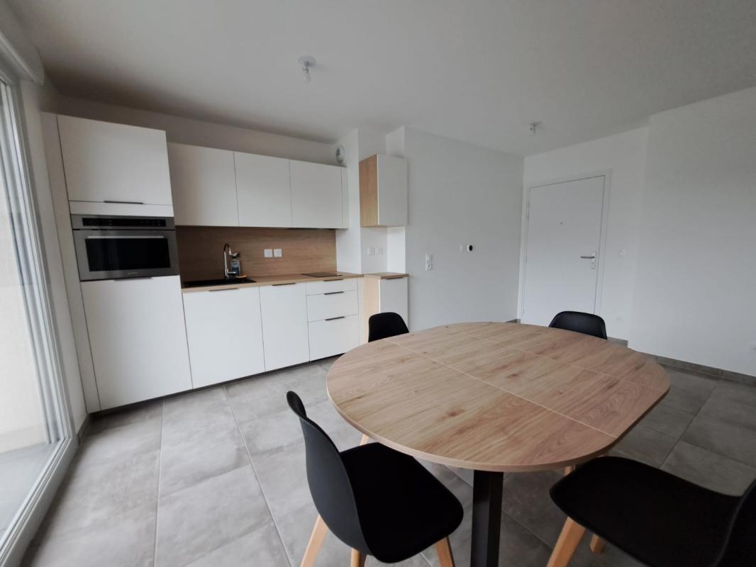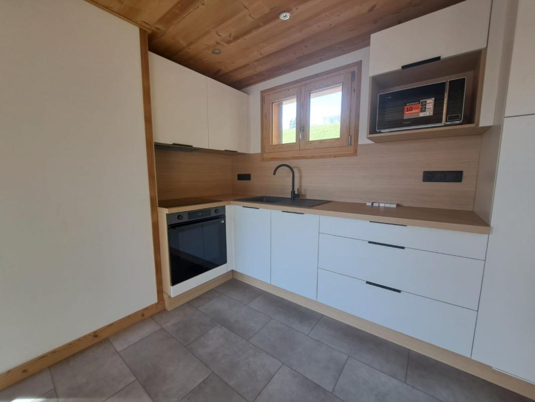 Saint pierre en Faucigny, dans résidence neuve, appartement T2 meublé au 2ème étage comprenant une cuisine aménagée ouverte sur séjour avec accès au balcon, 1 chambre, 1 salle d'eau et WC, un garage