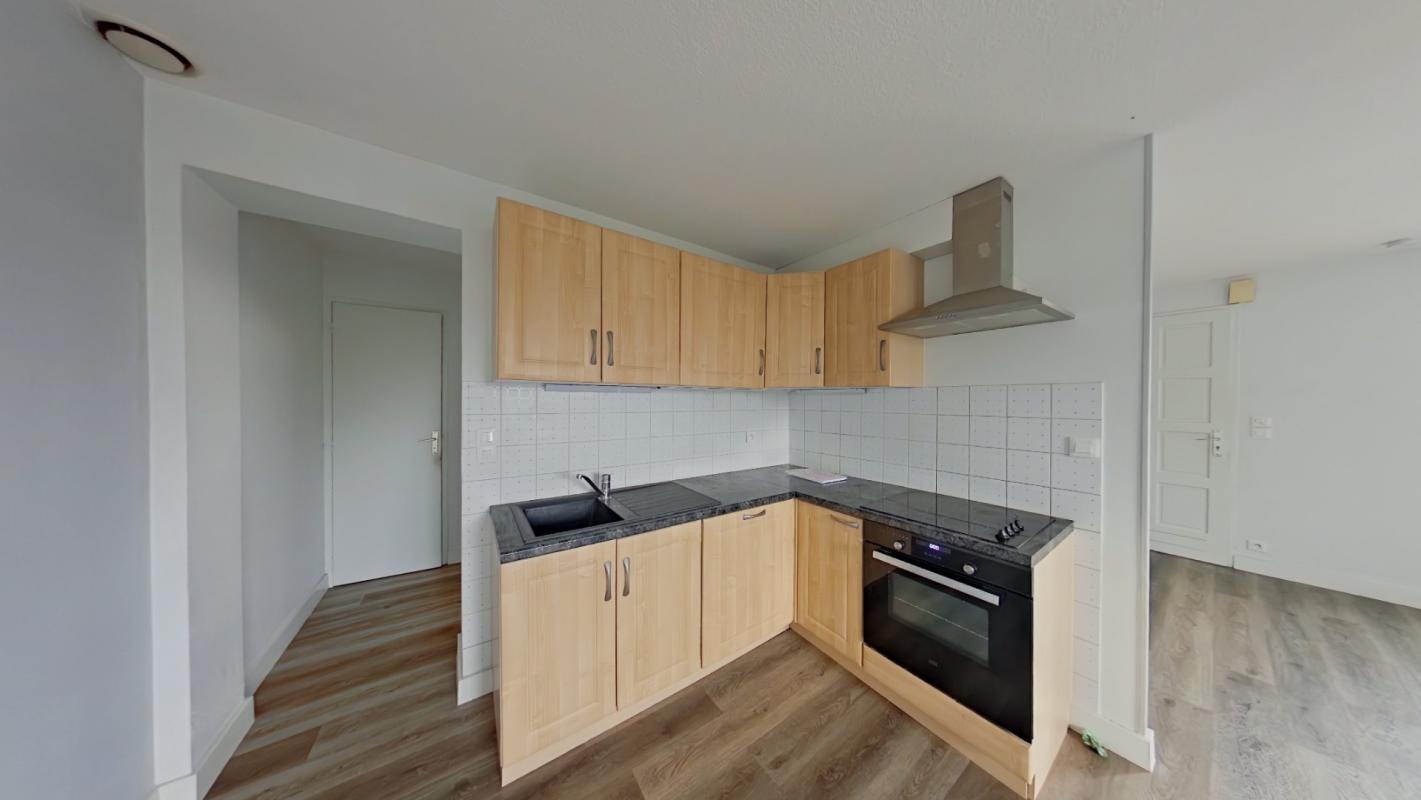 GRAND RUE - Appartement de T1 Bis au rez-de-chaussée comprenant une entrée ouverte sur une salon/séjour, une cuisine aménagée et équipée (réfrigérateur, hotte, plaque), un bureau, une salle d'eau avec toilettes.