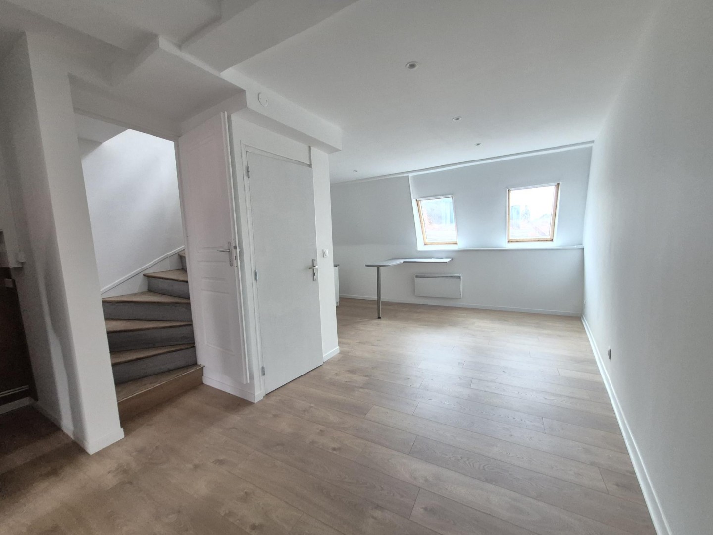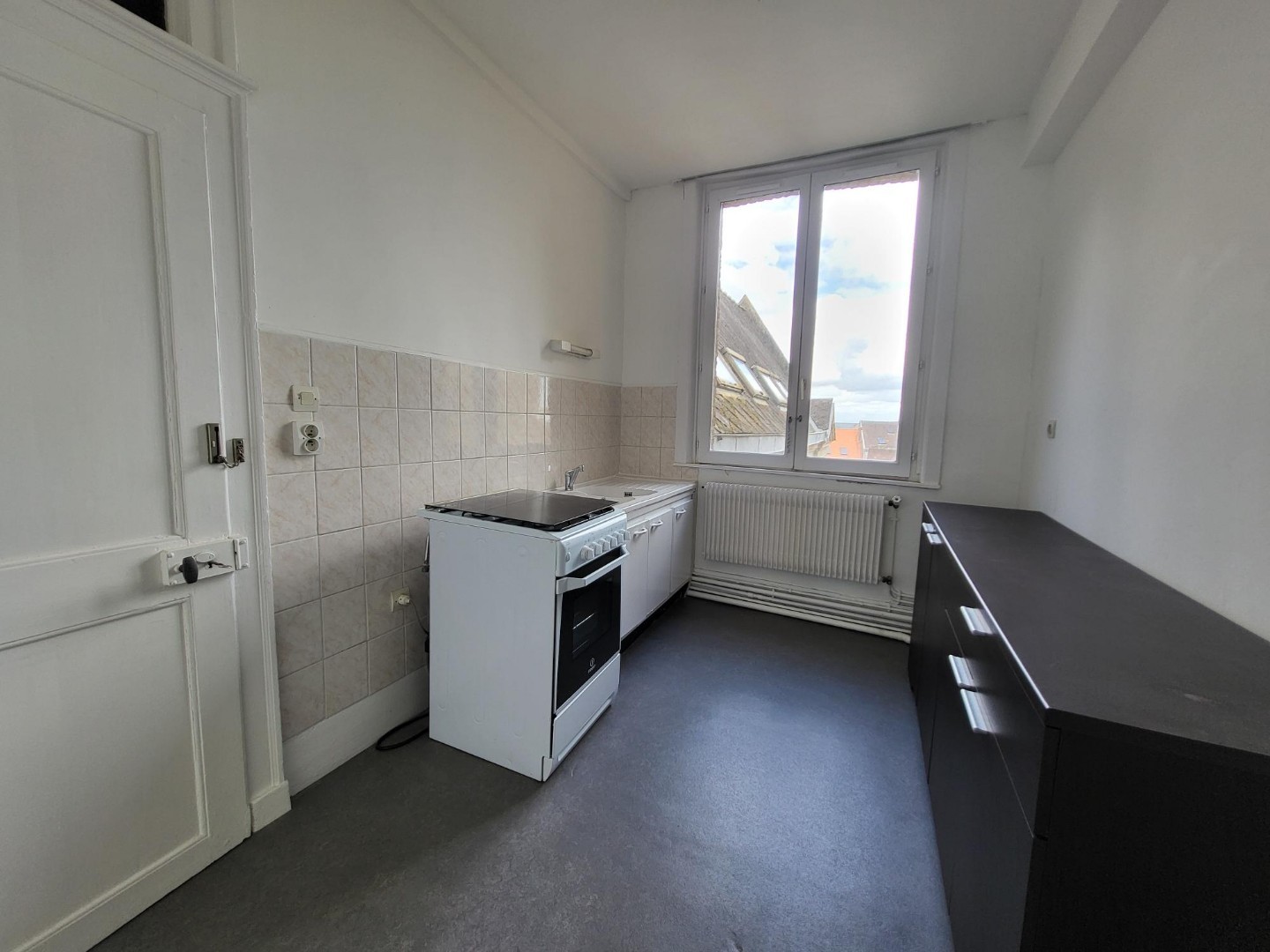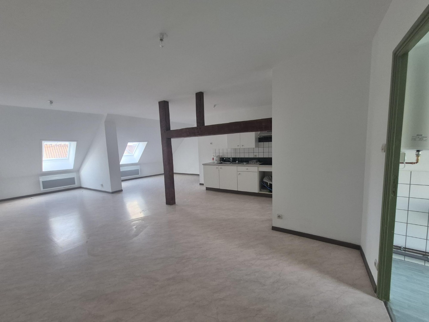 Situé au 3ème étage d'un petit immeuble calme, joli appartement de 60m² situé en centre ville de Saint-Omer, trés spacieux et lumineux comprenant : grande piéce principale avec coin cuisine équipée (plaques, hotte, évier), une chambre, salle de bains avec...