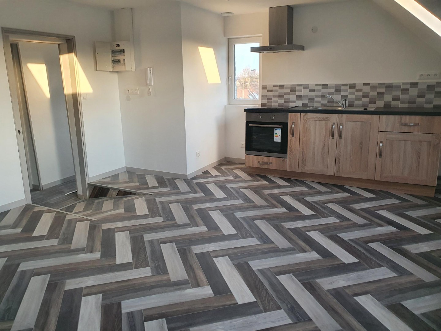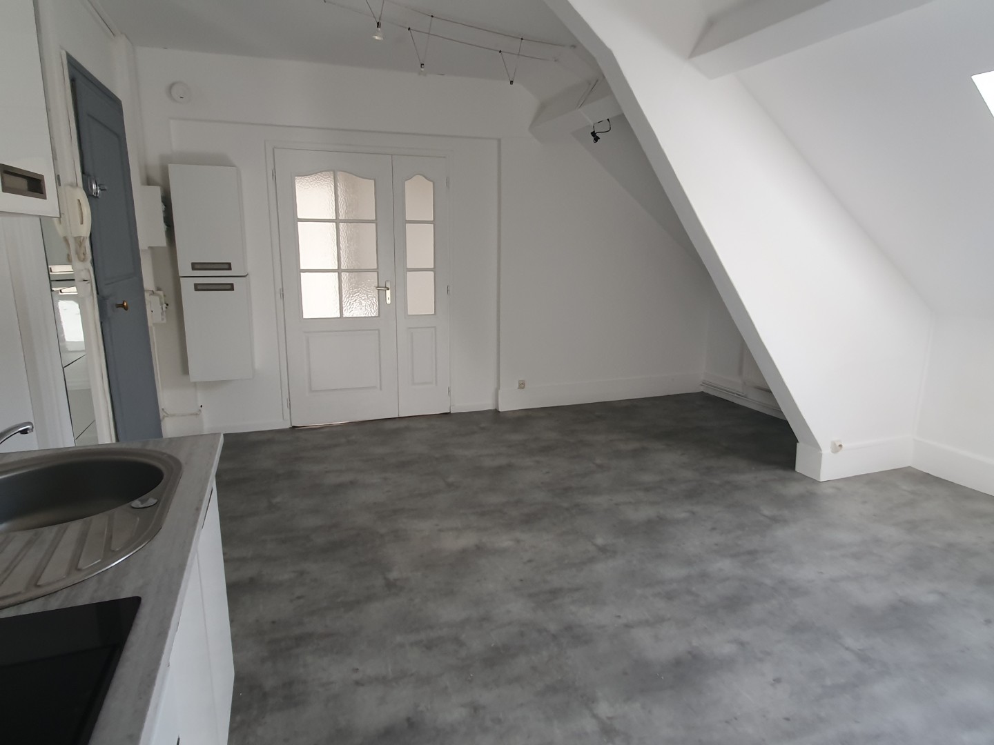 St Omer à proximité de la gare Très bel appartement au 2e étage. Il comprend : une pièce de vie avec coin cuisine équipée (four, plaque vitro, hotte) une chambre, une salle d'eau. Une place de stationnement. Chauffage électrique charges : 55 ? pour l'...