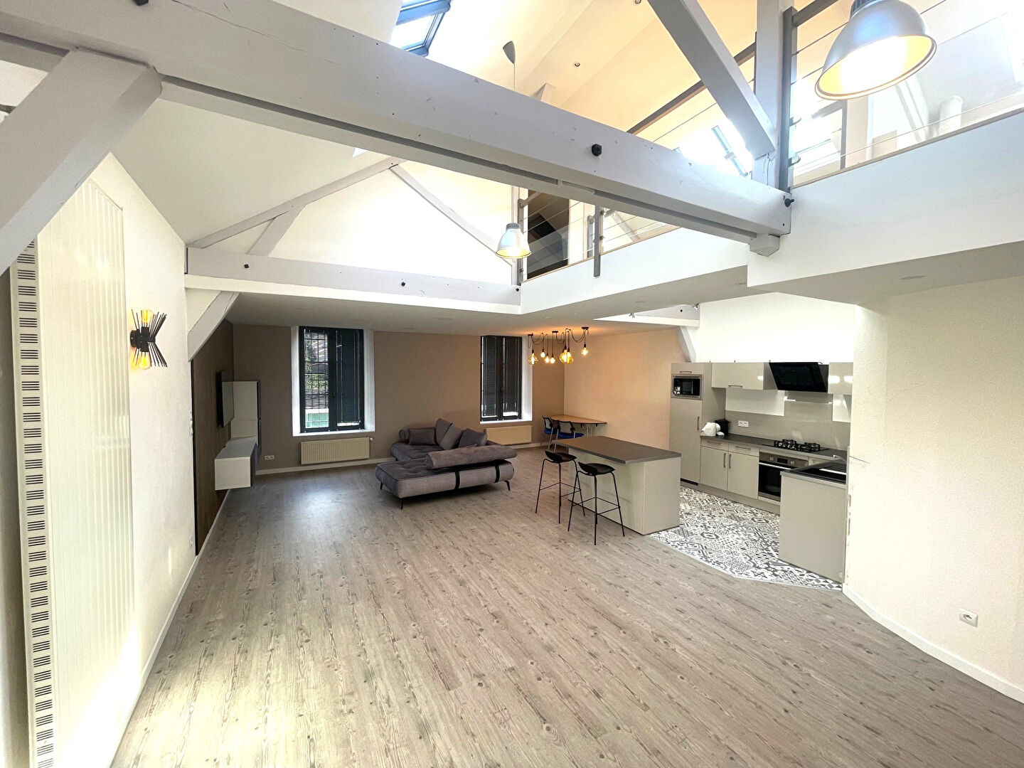 TROYES- Limite SAINT ANDRE LES VERGERS superbe loft de type 4 de 113.95m² dans copropriété sécurisée comprenant au rez de chaussée entrée, pièce principale avec cuisine ouverte aménagée et équipée, chambre, salle de bains douche et baignoire, wc séparé, celli...
