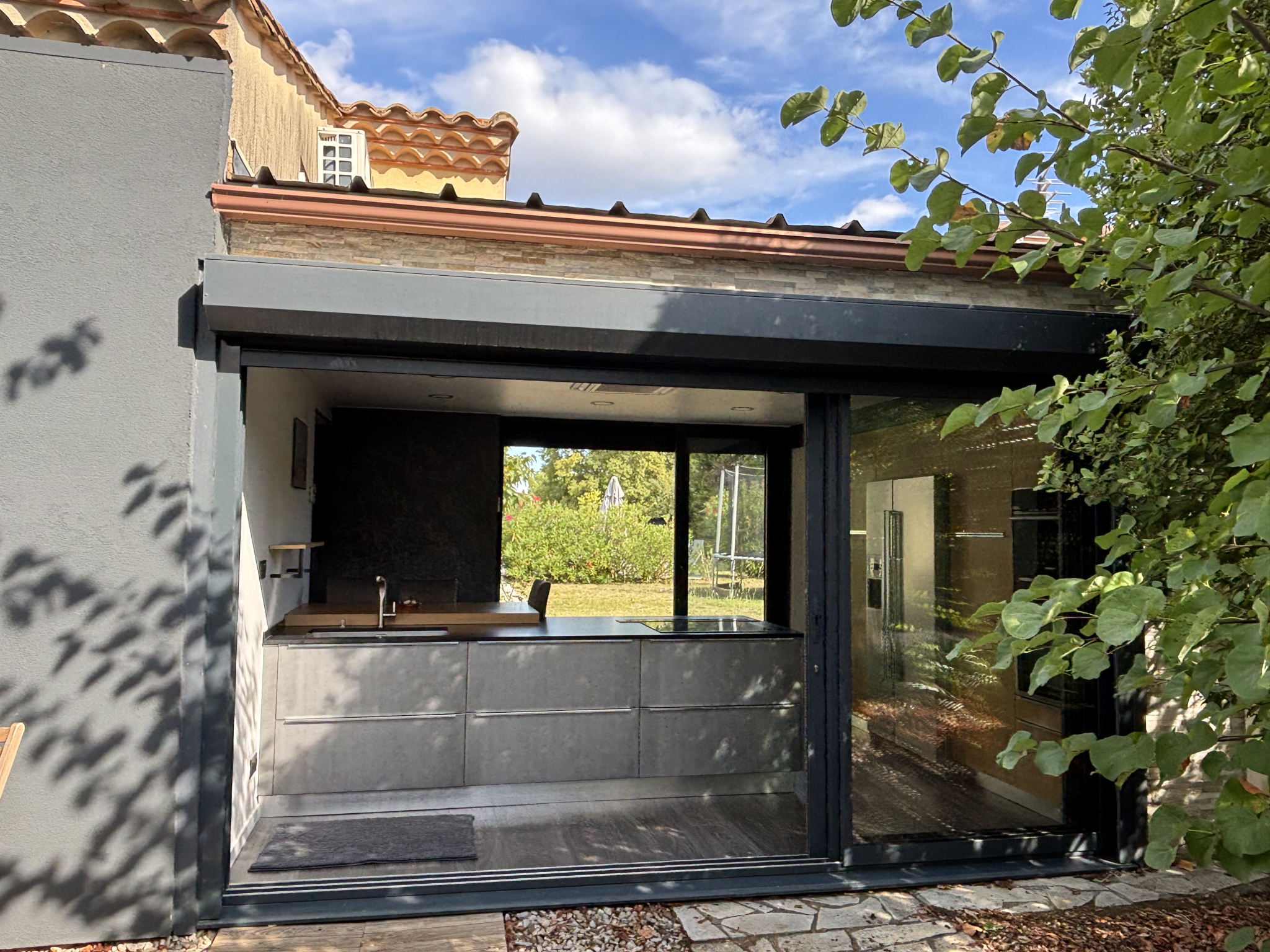 À louer Villa 4 pièces à Gignac (Hérault) Dans un cadre paisible et verdoyant, découvrez cette charmante villa de 120 m2 nichée sur un vaste terrain arboré, sublimé par un majestueux pin parasol.