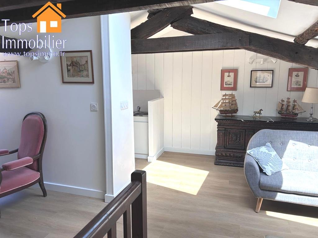 Au 1er étage, en plein coeur du centre ville dans une rue calme, un duplex avec beaucoup de charme: au 1er étage une belle grande pièce de vie de 36m² avec un parquet ancien vitrifié et des boiseries créant une séparation ajourée, un coin cuisine équipée (hott...