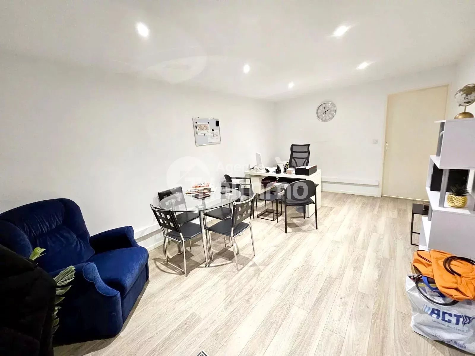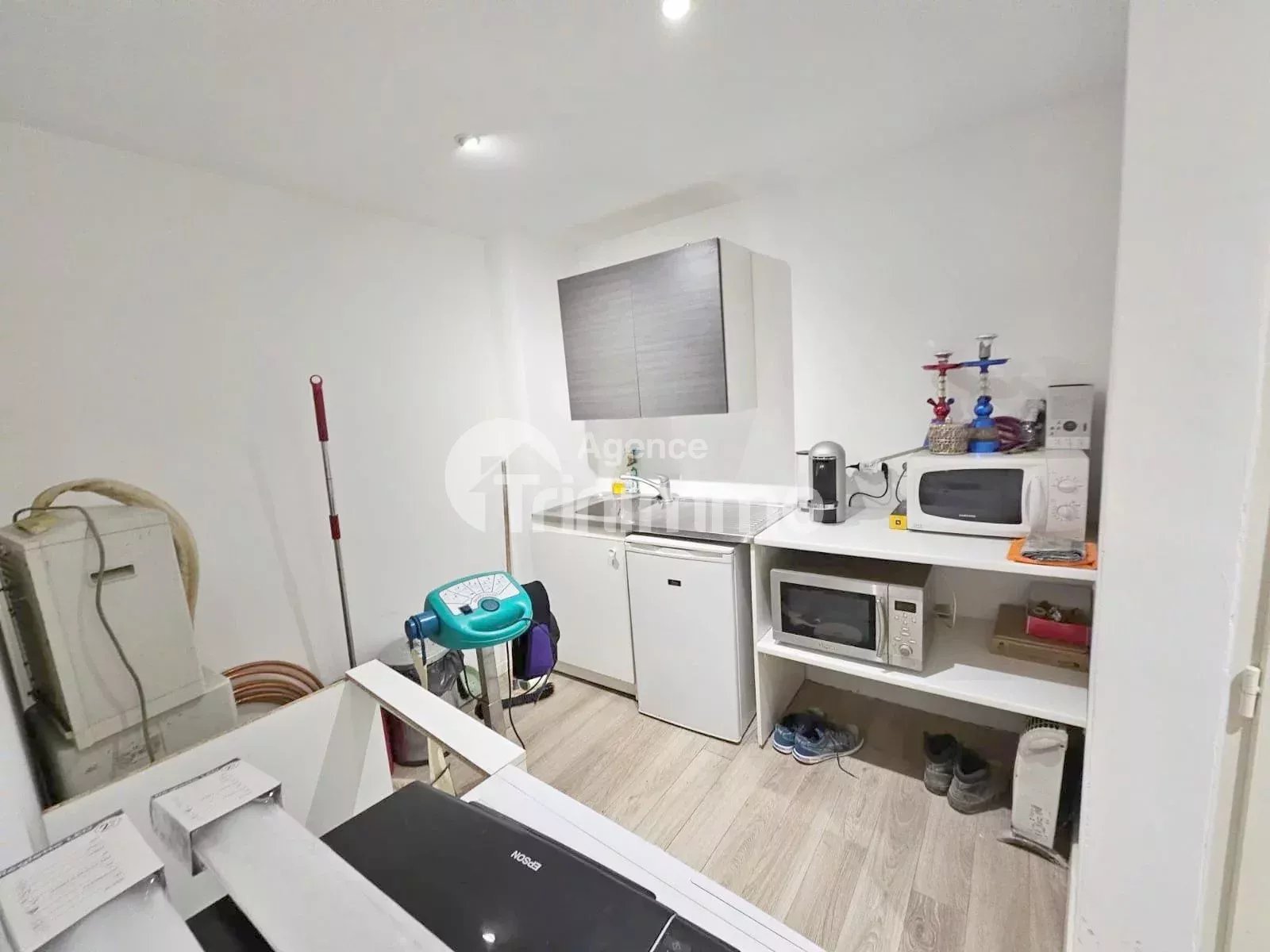 En rez-de-chaussée un local commercial avec bureau , une kitchenette et un wc et en sous-sol une grande cave pour stockage. Disponible le 11 MAI 2026