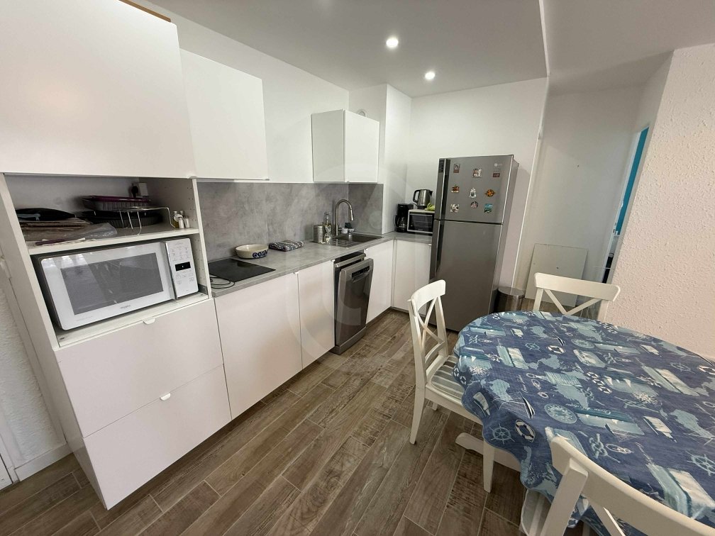 PALAVAS - 2eme LIGNES FRONT DE MER - Résidence LES COQUILLES - 13 Rue Taillebourg. Charmant appartement MEUBLÉ type 2 pièces entièrement réhabilité qui se compose comme suit : Un grand et lumineux séjour, une cuisine ouverte aménagé et équipée (réfrigérateur, ...