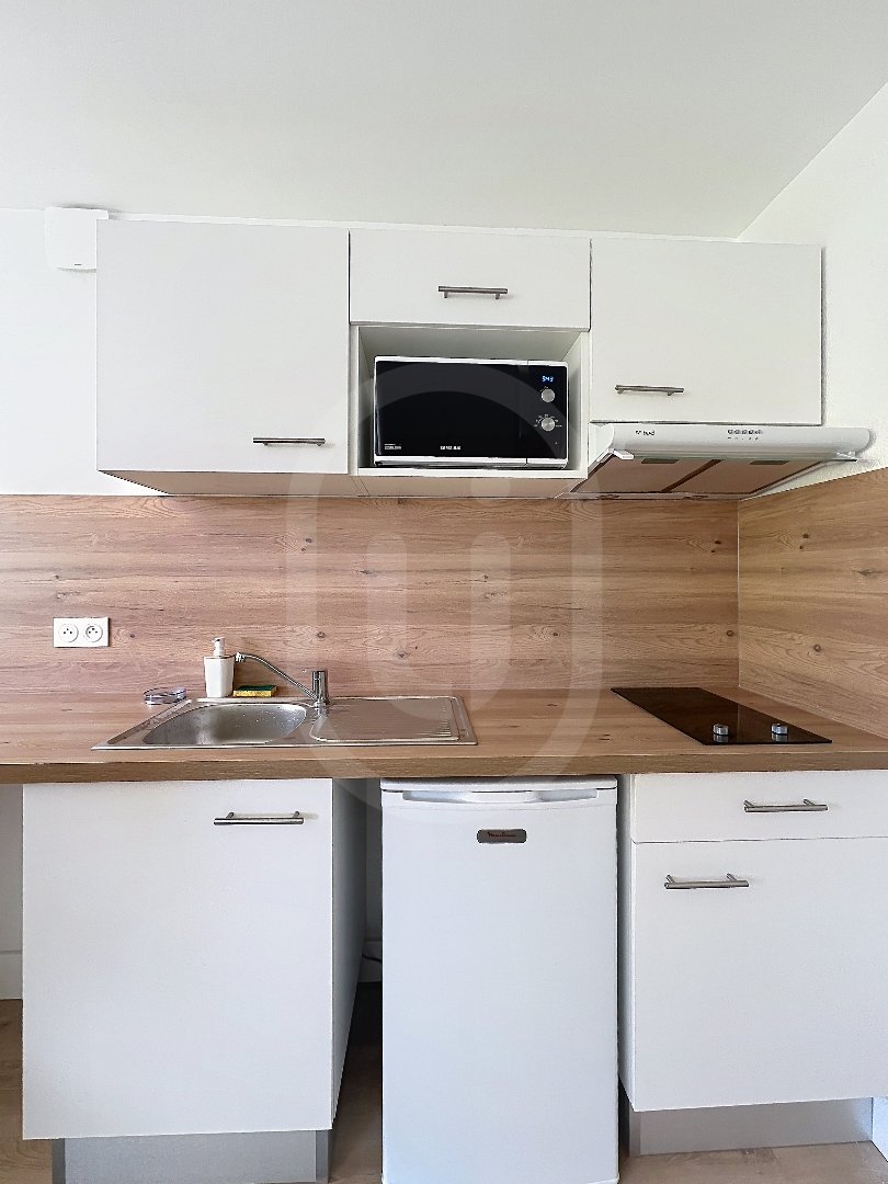 MONTPELLIER - SAINT ELOI - Résidence LA CARDAMOME - 115 Impasse Valteline - joli studio de 22, 60 m² qui se compose comme suit : une entrée avec placard aménagé, une pièce de vie de 12,20 m², une cuisine ouverte (comprenant meubles hauts, meubles bas, plaque d...