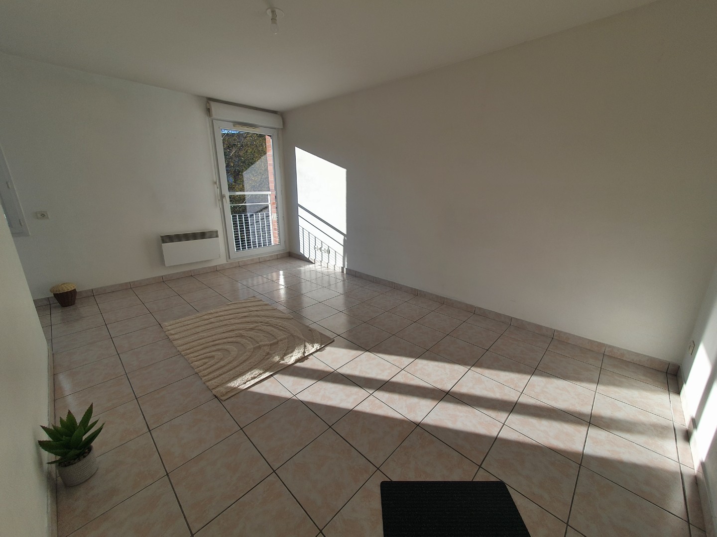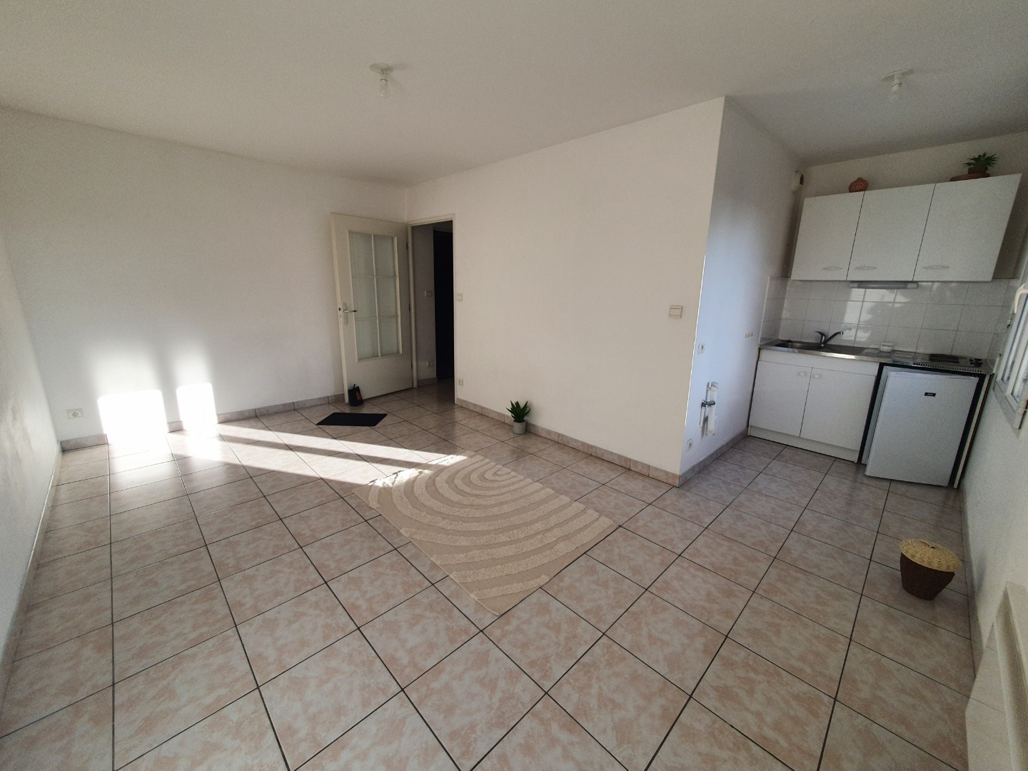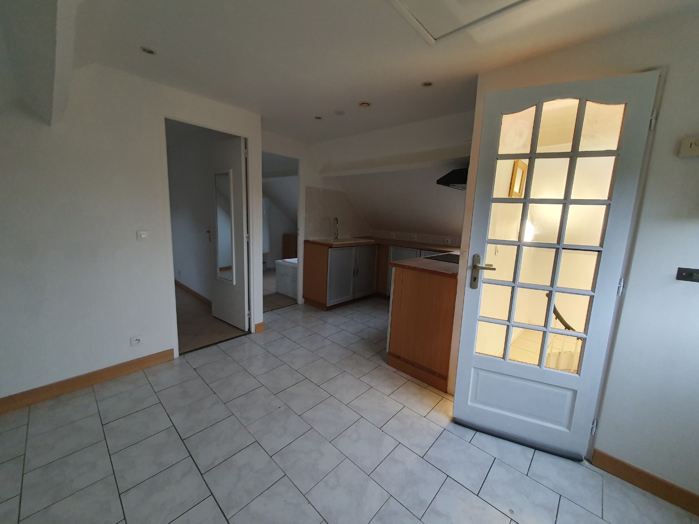Nous vous proposons un grand studio à proximité des axes autoroutiers. Vous disposez d'une entrée, sur un premier pallier un placard, sur un second pallier l' entrée donnant sur une grande pièce avec emplacement cuisine non équipée, un couloir avec p...