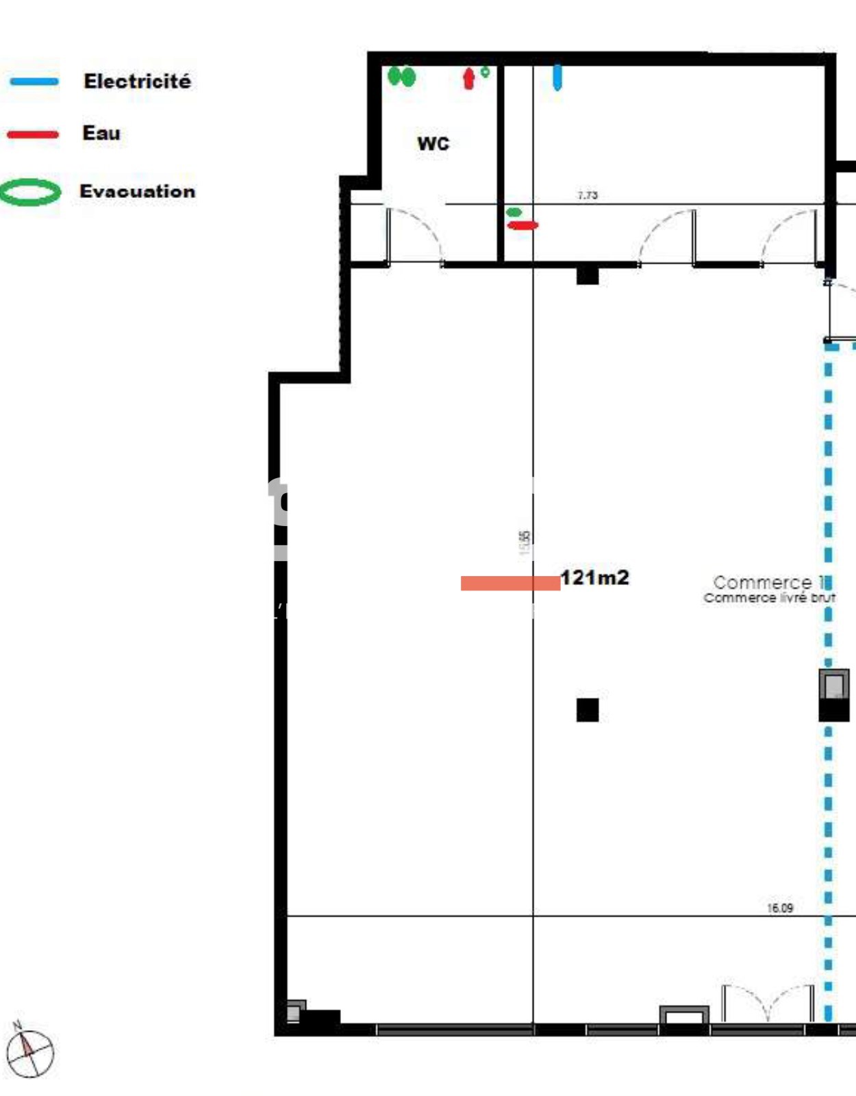 Nous vous proposons un local commercial d'une surface totale d'environ 83 m² comprenant 56 m² au rez-de-chaussée et 27 m² au sous-sol.