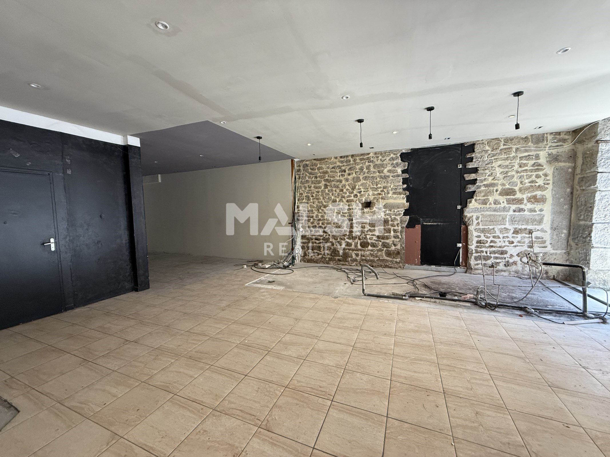Nous vous proposons à la location, un local commercial de 171,20 m² (dont 20 m² env. en mezzanine) avec plafond à la française et pierres apparentes.