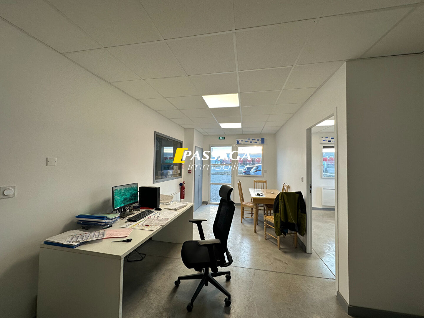 Ce local dispose d'un grand sas d'entrée, d'un bureau, de 2 pièces supplémentaires et d'un wc avec un point d'eau.