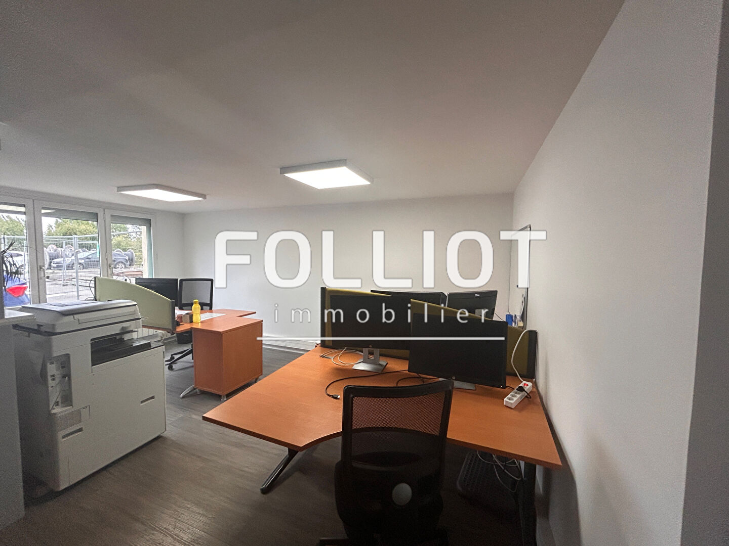 Un local commercial de 570 m² environ, comprenant : un hall d'entrée, cinq bureaux, vestiaires douche et wc, wc. Au premier étage : palier, salle de réunion, sept bureaux, wc. Au deuxième étage : quatre bureaux. Dépendance, atelier de stockage. Terrain de...