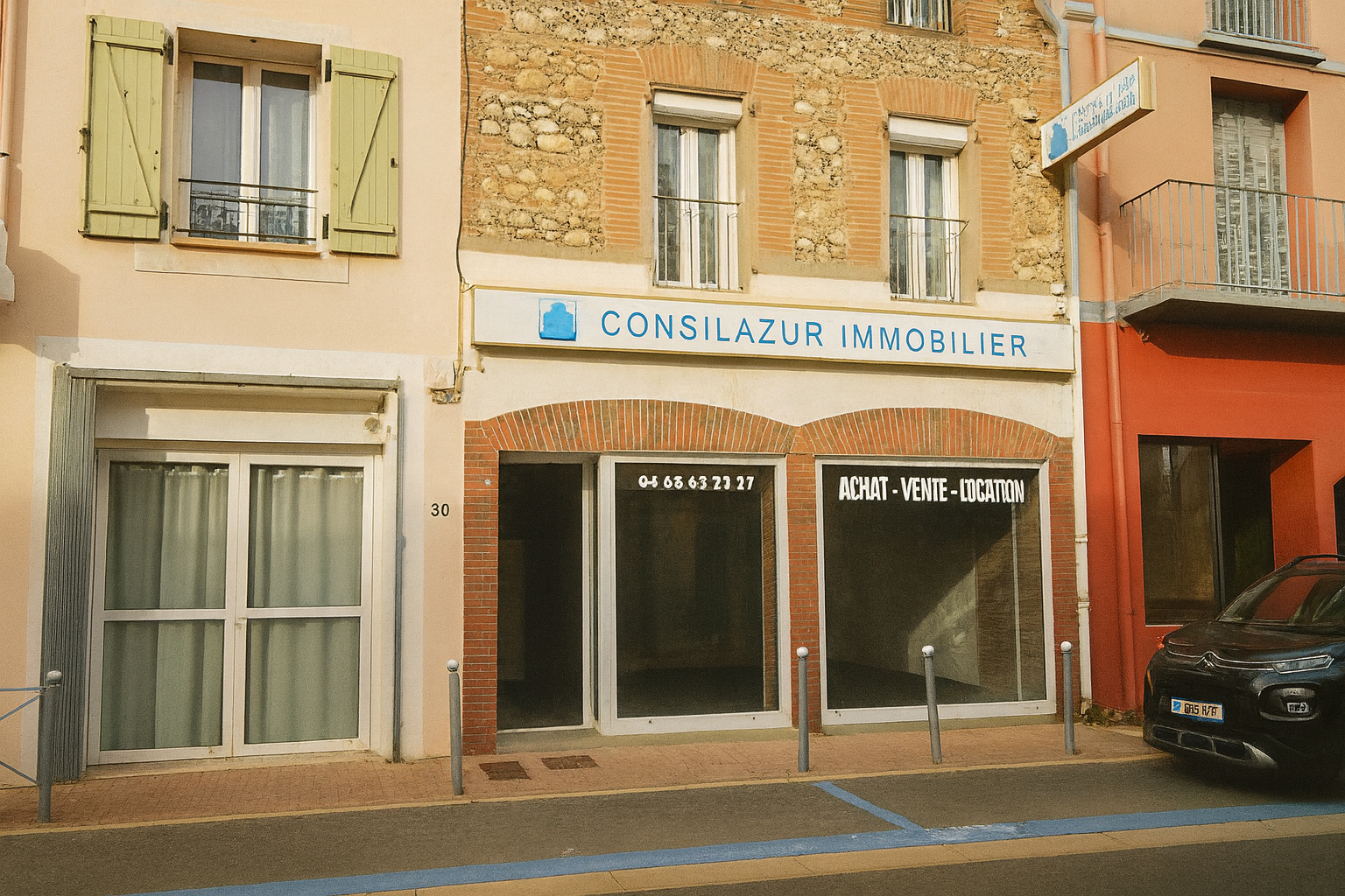 Local commercial ou professionnel de 60 m², traversant et bénéficiant d'une double entrée avec vitrines. L'accès principal se fait par l'avenue, donnant sur une vitrine pleine hauteur et une première pièce ouverte comprenant un bureau semi-ouver...